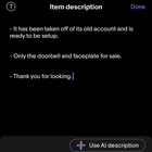 - It has been taken off of its old account and is ready to be setup. - Only the doorbell and faceplate for sale. - Thank you for looking.