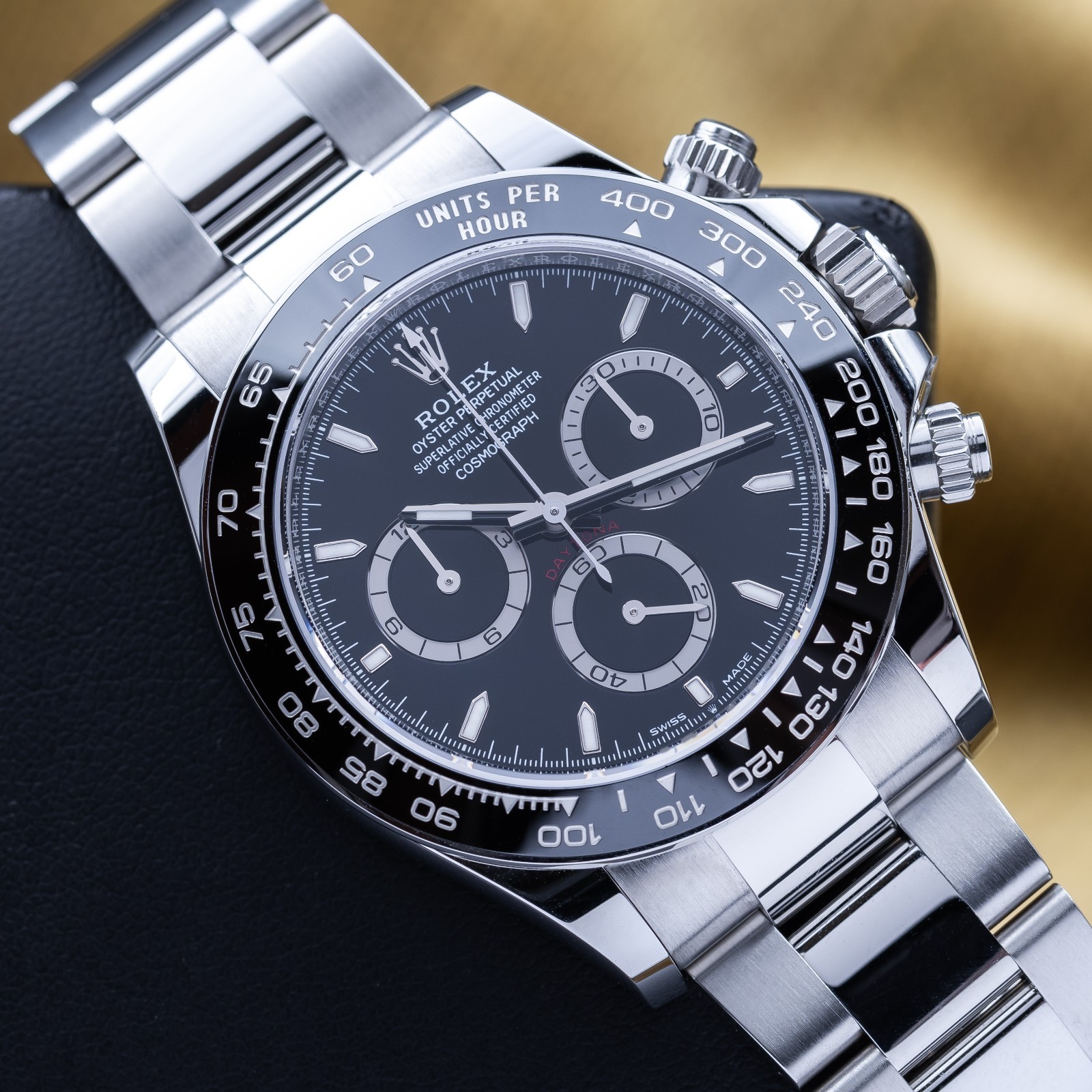 No introduction needed on this one. The ceramic Daytona in steel...and the latest reference! This one features the classic black dial that contrasts beautifully against the silver rings on its trio of chronograph registers. This watch combines sporty elegance with a touch of luxury. Whether you’re dressing up or just going casual, this watch works for any occasion and is a real head-turner. It’s a must-have for any collector! This one is from 2024, which means it’s under Rolex warranty until 2029…talk about peace of mind! Comes as complete as can be, with boxes, all papers, warranty card, green tag and white tag with the dial code! The case, crystal and bracelet are in great condition. Don’t miss your chance to grab this one at a great price! INCLUDED Rolex Green Outer Box Rolex Green Inner Box Rolex International Warranty Card (Dated 2024) Rolex Instruction Manual Rolex Warranty Booklet Rolex Green Leather Card Sleeve Rolex White Hang Tag with serial number and specific dial reference Rolex Green Emblem Hang Tag OFFERS Our pieces are always priced very competitively to the market. However, you are always welcome to make a reasonable offer. SHIPPING All watches are in stock and will usually be shipped to an eBay authenticator within 2 business days of payment verification. We offer free, fully insured FedEx shipping with tracking on all purchases with a US delivery destination. We also ship internationally via fully insured FedEx International Priority. However, buyers will be responsible for any potential import duties and customs fees applied by their country. All watches are carefully and professionally packaged to guarantee the safe arrival of your new timepiece. TAX eBay subjects all purchases made in America to its state’s applicable sales tax. That amount will be determined once you make your order. International customers are responsible for taxes applied by their country. AUTHENTICITY With over a decade of experience in the industry, we at Watches of Charlotte pride ourselves on being a trusted name in the industry. We work with watchmakers to authenticate our watches so we can guarantee that all of our pieces are 100% authentic and original. All photos used in our listings are taken in-house and are of the actual timepieces being purchased. We fully stand behind the authenticity of every product we sell. For extra peace of mind, eBay also offers an Authenticity Guarantee. This means that every detail of your watch is inspected by independent experts before you receive it, so you can have complete confidence. Our commitment to providing exceptional service has garnered us a loyal, worldwide clientele and a 5-star ranking on eBay, Facebook and elsewhere - check our reviews! ABOUT US We love everything about watches and thoroughly appreciate helping others discover the enjoyment of this pastime. Whether it’s helping you find your grail or the next watch to fill that empty slot in your watch box, we consider it a privilege to be part of your journey. Our aim is to be as fully transparent as possible in all our listings. Please let us know if you have questions about this watch or any of the others we have for sale. We’re always willing to entertain trade values up or down. We look forward to helping you secure your next timepiece!