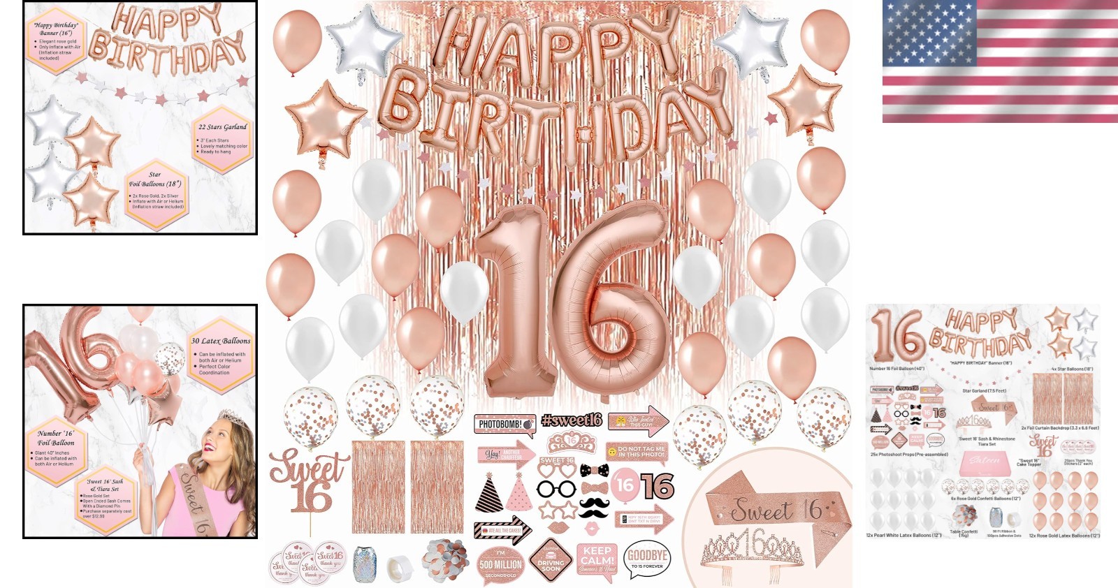 Ultimate Sweet 16 Birthday Decorations Rose Gold Sash & Tiara Set with Props ‹ › ‹ › ‹ › ‹ › ‹ › ‹ › ‹ › ‹ › ‹ › ‹ › Ultimate Sweet 16 Birthday Decorations Rose Gold Sash & Tiara Set with Props Make her milestone birthday genuinely unforgettable with our exquisite Ultimate Sweet 16 Birthday Decorations set, designed to envelop your precious girl in elegance and festivity. This comprehensive collection promises to create enchanting memories that last a lifetime. Celebrate her coming of age with grace and charm like never before! What's Inside: SWEET 16 BIRTHDAY SASH + RHINESTONE TIARA: Elevate her status to royalty with a stunning ‘Sweet 16’ sash and a dazzling rhinestone tiara. Crafted with care, these premium pieces will capture the hearts of family, friends, and—most importantly—your birthday girl! (Separate worth: over $13) 25 PRE-ASSEMBLED PHOTOSHOOT PROPS & DOUBLE FOIL CURTAIN BACKDROP: Ignite the creativity of your event with 25 classy props! Our special double backdrop offers flexibility in creating a picture-perfect photo booth, ensuring every moment is memorable. Constructed with exclusive rose gold components, it’s destined to delight! 36 ASSORTED BALLOONS + 98 FT RIBBON + 100 PCS ADHESIVE DOTS: Transform your venue with 36 striking rose gold and silver balloons that infuse joyous energy. Our holographic ribbons (3x MORE than standard sets) add a captivating touch for display perfection! LOTS OF OTHER GREAT GOODIES: Adorn your tables with 15g of shiny confetti, and hang a matching birthday banner and star garland to enhance the festive ambiance. Our unique Sweet 16 cake topper is the cherry on top of your lavish setup. Follow our intuitive guide for seamless decoration—all you need now is a delicious cake! ULTIMATE DREAMY ROSE GOLD ‘SIXTEEN’ BIRTHDAY BOX: Experience the bliss of finding everything you need in one convenient set. Immerse your celebration in a sophisticated palette of rose gold and silver, offering premium value over $50 and guaranteeing your girl’s special day stands out. Why Choose Our Ultimate Sweet 16 Birthday Set? Uncompromising quality, thoughtful inclusions, and an enchanting aesthetic come together in our exclusive Sweet 16 Birthday Box. Indulge in the dreamlike elegance of rose gold, ensuring your girl’s birthday radiates happiness and pride. From tiara to backdrop, every element tells a story of love and celebration. Transform the birthday party into a royal affair—order your Ultimate Sweet 16 Birthday Decorations Set today and watch the magic unfold! Shipping Free & Fast Shipping - We offer free shipping to most of the USA with a normal delivery time of 3-10 businessdays. However, due to various situations, additional delivery time (up to 3 weeks) may be required for some items. Alternative Carriers - We may use alternative carriers (e.g. USPS, FedEx, UPS, etc.) to ensure your package arrives safely and on time. Due to the use of multiple carriers, we are unable to provide a tracking number automatically. Handling Time - Orders are processed and shipped within 1-5 business days of receiving cleared payment. Shipping Restrictions - Shipping to Alaska, Hawaii, Puerto Rico, Guam, and other US territories may incur shipping charges or delivery restrictions. Please contact us before ordering, or your order can be refunded/cancelled. State Restrictions - There may be restrictions based on your state of purchase. For example, certain items may not be shipped to California due to state regulations. Contact for Tracking Updates - If you require tracking updates or have any concerns about the delivery of your order, please feel free to contact us, and we will be happy to assist you. Return Please see our ebay return policy. We do not accept return on most products. This is to avoid customers mis-using ebay returns. All sales are final. Please be sure to check the return policy listed at the top of the listing. In rare cases, we may accept returns, if the buyer pays both ways shipping and 20% restocking fee. If you are un-sure of return policy of a particular item, please ask before buying. Payment We accept all major credit cards, PayPal, and Apple Pay for your convenience. Your payment information is secure and encrypted to ensure a safe and seamless transaction. Please complete your payment within 3 days of purchase to avoid any delays in shipping. Feedback Your feedback is extremely important to us. We strive to provide the best products and customer service possible. If you are satisfied with your purchase, please take a moment to leave us a positive review. If you have any concerns or issues with your order, please contact us before leaving negative feedback. We are committed to resolving any problems and ensuring your satisfaction. Contact Us If you have any questions or concerns, please feel free to reach out to our customer support team. You can contact us through the eBay messaging system. We are available Monday to Friday, 9:00 am to 5:00 pm EST, and we will do our best to respond to your inquiry within 24 hours. Buy it now and enjoy a pleasant shopping experience! UPC: Not Set Unit Quantity: 25 count Character: Not Set Material: Latex,foil,paper,rhinestone Brand: Unbranded Type: Backdrop Occasion: 16th Birthday Character Family: Not Set Color: Rose Gold Theme: Princess Production Technique: Not Set MPN: Not Set Department: Girls Product Line: Not Set Country/Region of Manufacture: Not Set Pattern: Rose Gold Letter Print Style: Contemporary Origin: California Age Level: Not Set Production Style: Not Set Unit Type: Unit Antique: Not Set Vintage: Not Set Personalize: Not Set