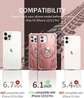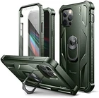 Rugged Full Body Case for iPhone 12/12 Pro (6.1 inches) with Screen Protector & Ring Kickstand Car Mount, Slim Shockproof Protective Bumper Cover with Anti Dust Plugs (Army Green) A Slim Choice for iPhone 12/12 Pro: Our bumper case is thin and light to fit on your iPhone 12/12 Pro without bulk, and the pretty cool design and exquisite matte texture will make it look high-end and glamourous in your hands. (Please check the phone model carefully before purchase),Ultra-stable Ring Kickstand: Supporting 360°rotation and 90°flipping, the swivel ring can be flexibly adjusted according to your needs. Easy to pull and out and very sturdy and stable to prop your iPhone 12/12 Pro at various angles.,Responsive Screen Protector: The high-quality PET screen protector is touch-sensitive, ultra-clear, anti-scratch and smudge-resistant. It�ll attach to your phone�s screen tightly without creating air bubbles or trapping dirt or moisture.,Full-Coverage Protection: With a scratch-resistant front cover and an impact-resistant PC back one, our rugged cover will bring 360° all-around protection for your iPhone 12/12 Pro, preventing it from cracks and other damages.,Enhanced Drop Protection: Besides soft TPU edges to prevent scratching and wearing, the 4 corners of this shockproof case are thickened and reinforced, specially designed to cushion your iPhone 12/12 Pro against drops and bumps.