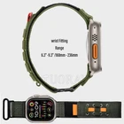 Rugged Military Nylon Loop Band For Apple Watch Ultra 9 8 7 6 5 4 3 Sport Strap 1. New unique designed loop nylon strap adjustable with metal hook totally perfect compatible with Apple Watch Ultra 2 49mm, Apple Watch Ultra 49mm, Apple watch series 9/8/7/6/5/4/3/2/1. 2. The thin, lightweight Loop for apple watch is made from a nylon weave creating a soft band with increased elasticity for a comfortable fit. 3. Hook and loop fastener closure and pull tab design is much easier to adjust the fitted length, allows for a more precise size to your arm. 4. Easy to wear, adjust according to your wrist circumference. 5. Breathable and comfortable, not stuffy to wear. 6. The iwatch bands is suitable for 6.7"-9.05"(170mm-230mm) wrist. Package included: 1* Nylon Loop Strap (Watch is not included!)