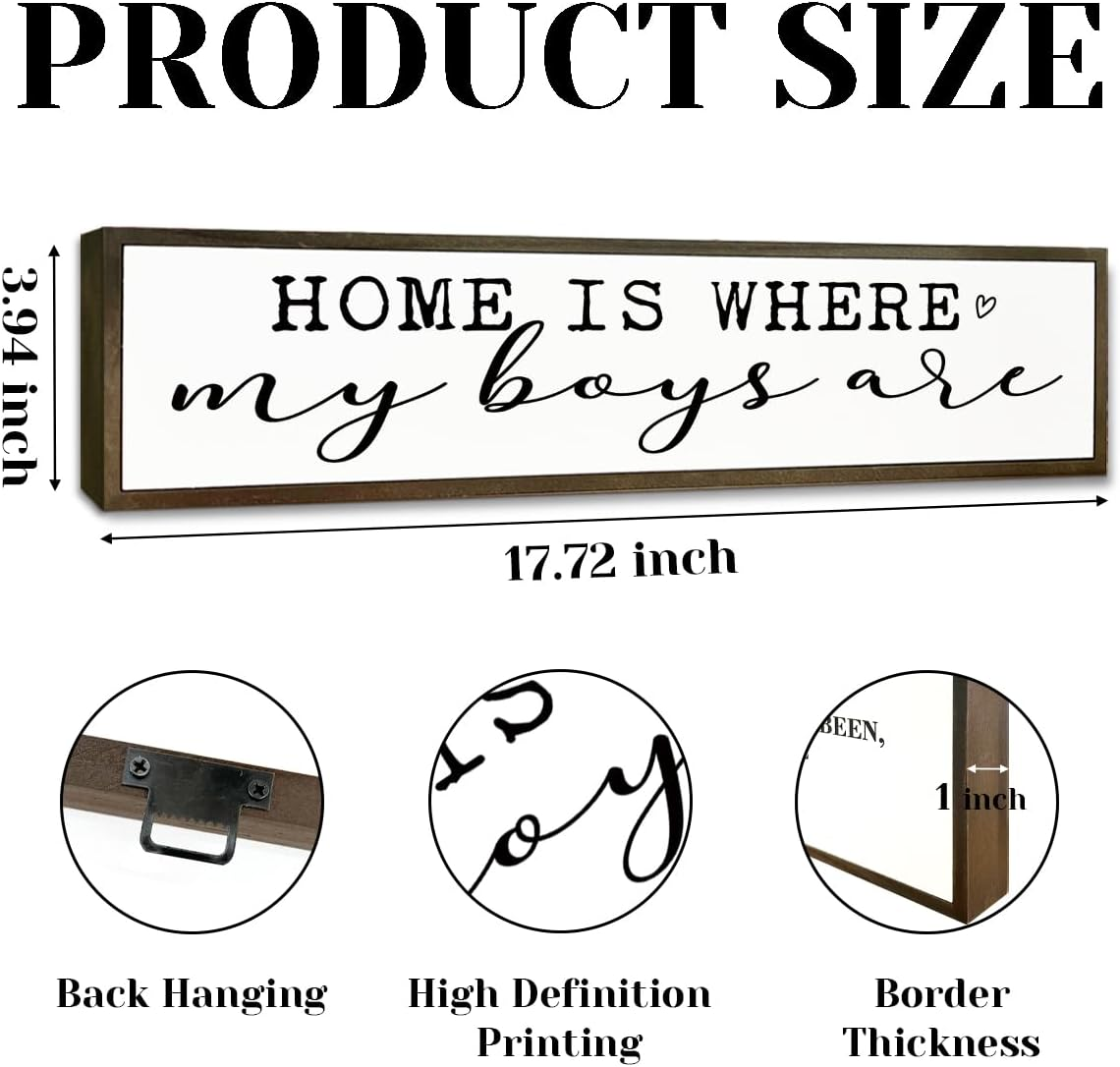 Store New Arrivals Add to Favorite View Feedback Contact Fast deliveries to the customer's home Quality customer service John Make the customers happy! Rustic Wood Sign, Home Is Where My Boys Are Sign, Decorative Wooden Wall Plaque, Boy Mom Home Decor, Living Room Decor, Mother'S Day Gift for Mom from Son 17.8X4X1.18 Inches Description ❤Size: 45x10x3cm (17.8x4x1.2 inches), proper size for you to decorate, won't take up too much space. ❤Premium Quality: Our wood box sign is made of high-quality wood material, which is beautiful, strong, durable, and not easy to fade. It is ideal for the decoration for different occasions. ❤Aesthetic Sense of Design: This exquisite wooden box is in high-definition UV printing technique, with emotional text and beautiful graphics, perfect for gifting and indoor use. It can be placed anywhere for people to enjoy and feel happy. ❤Widely Used: This rustic wooden plaque sign can be hung on the wall or freely stand on the shelf and desktop. It is an ideal for home office desktops, bathroom shelves, living rooms, bedrooms, etc. ❤Great Gift: This rustic ornament is a great gift for Valentine's Day, Christmas, birthdays. It can not only be given to family, friends, colleagues, etc., but also as a beautiful gift for yourself, and it is also a good choice for housewarming gifts, wedding souvenirs, etc. Dimensions:45x10x3cm (17.8x4x1.2 inches) Material: made of quality pine wood; with emotional text and beautiful graphics. This is looking for uniquely designed gifts for you and your family or friends, it is the best gift for your family. Item model number YZP-YZ-412 Color color Product Dimensions 17.8"L x 4"W Item Weight 0.56 Pounds Shape Rectangular ABOUT US We offer the best prices around on high quality products. Our E-store includes media such as books, movies, music and games while offering electronics, toys, sporting apparel, clothing, tools, general home, garden items and more. SHIPPING We are always working hard to ensure your package arrives as soon as possible. Please understand that some factors like weather, high postal traffic, and the performance of shipping companies are outside of our control. We offer free shipping to the lower 48 states and ship within 2 business days of payment, usually sooner. We do not accept P.O. Boxes. Please provide a physical address. For shipping outside of the continental USA, we only use eBay's Global Shipping Program. The item is shipped to KY and then sent to the rest of the world. International customers are responsible for all duties and taxes. Continue to 'check out' to calculate costs for shipping the item to your country. Messages regarding eBay's Global Shipping Program MUST be directed at eBay EXCLUSIVELY. RETURNS We offer a 30-Day Return Policy on items in which you are not completely satisfied with. You have the option of a full-refund or an exchange of the item. No returns are available on items shipped outside of the USA PAYMENT We accept PayPal. CONTACT US This page content is yet to come Please ad us to your favorite seller and visit again later Thank You CUSTOMER SATISFACTION We try our very best to make sure every customer is completely satisfied. If there's a problem, message us! We're happy to help. WE ACCEPT