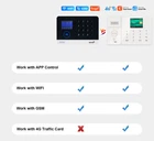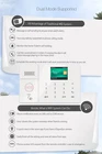 Advantage of 4G alarm system: Australia, United States, Canada has cut the 2G sim card service. And United Kingdom, Mexico, Euro Union, ect will cut the 2G sim card in coming years. Without 2G networks, 2G/GSM only alarm system will fail to achieve it's major function, remote control through calls and SMS. To provide customers with longer alarm system lifespan, our company is launching a series of it's 4G alarm system which are both 4G/3G/2G(GSM) Network compatible. The 4G alarm system will work with United States, Australia, United Kingdom, Euro Union, Canada and most countries' 4G Sim card(Except China, Japan and Korea). The 4G alarm system support use 4G sim card to receive SMS message or phone call to remote control the alarm system(2G alarm system not support sim card function). Product Overview Tuya APP IOS/Android 4G+WIFI Home Alarm System Auto Dialer Details Package Including: 4G+WiFi Alarm System Main Panel * 1 Pcs Wireless PIR Infrared Detector * 6 Pcs Wireless Door / Windows Sensor * 20 Pcs Remote Control Key * 6 Pcs RFID Tags * 6 Pcs Wired Siren * 1 Pcs(110dB) Built-in Siren * 1 Pcs(85dB, the siren is built-in main panel) AC Adapter * 1 Pcs English User Manuel * 1 Pcs (NOT Including 4G Sim Card) Question and Answer: Q: What kind of Sim Card support? A: The alarm system is 4G version, it support 4G+3G+2G(GSM) Sim Card, the sim card detailed I have writed in the description. Q: Can this alarm system work with Amazon Alexa or Google Home? A: Compatible with Alexa and Google home: This alarm sysetm works with Amazon Alexa and Google Home for voice control ( Alexa and google home devices not included ). Just ask app Alexa on your phone to Arm / Disarm/ the whole system in a specific instruction like "Alexa, please arm the alarm system". Remote control your Alarm system anywhere in the world with your smart cell phone, no need repeated operation! Q: Can this alarm system work with WIFI and 4G Sim Card together? So if the WIFI failure, can switch Sim Card mode to work. A:Yes. User can connect alarm system with WIFI and 4G Sim Card to work. And when Alarm System be triggered, it will push alarm message to the APP via WIFI. And if the WIFI failure, will change Sim Card mode auto Dial Out. Q: It just with WIFI in my house and without 4G Sim Card,can I use this alarm system? A: Yes. Alarm System can work in WIFI mode only. The alarm system only support 2.4G WiFi, NOT support 5G WiFi. Q: Can I add additional remote controllers, door sensors, pir sensors, smoke detectors, gas detectors or other sensors to work with this alarm system? A: Yes. Alarm system can work up to 99 wireless sensors(wireless freq 433MHz) and wireless Siren, unlimited Wifi Camera. Q: Does the alarm panel with backup battery? A: Yes. Alarm system with internal rechargeable backup battery. It can support work when AC Adapt is cut. Q: What's the function of RFID Tags? A: It used to touch the main panel to arm or disarm soon and easily. Main Function And Feature: 1. 2.4 inch TFT display screen, concise user interface and menu hint design 2. Main interface status bar, date/clock indication, fairly obvious alarm host status. 3. Built-in powerful performance CPU master based on 32-bit Cortex-M3 core 4. Based on u cos – III operating system with multitasking design, great user operation experience 5. WiFi/4G/3G/2G(GSM)/GPRS intranet alarm system, support different alarm channels, like APP push/SMS/voice monitoring/intranet center etc. to ensure the alarm performance stable and reliable 6. Support SMS arm/disarm and voice arm/disarm 7. Support up to 100 learning/storage location for remote control, RFID cards and wireless detector 8. Support many defense zones, such as gate, SOS, bedroom, window, balcony, perimeter, smoke, gas, carbon monoxide, water leaking, etc. 9. Support the main power malfunction, backup power shortage, tamper alarm and other extended alarm. 10.Support entry/exit zone, indoor zone, perimeter zone, 24-hour zone, etc 11.Up to 5 groups preset alarm phone numbers, SMS on/off and dial on/off can be set respectively 12.Support external wireless siren, Support timing arm and disarm 13.Can store and inquire daily operation records and alarm records. 14.4G/3G/2G(GSM) network clock synchronization, to ensure accurate color, and support country time zone setting. 15.Support multi-language menu display, voice prompts and alarm SMS setting. 16.Can record 20 seconds voice message and alarm voice. 17.Telephone function, support 5 groups re-dial number. 18.User-friendly APP operation experience and user interface. Push Arm/disarm message to app. 19.Support APP remote arm/disarm, parameter setting and accessory management. 20.Online GPRS to obtain equipment status, automatic alarm when offline. 21.Reserved remote GPRS TCP / UDP protocol channel, compatible with multiple alarm center networking protocol to facilitate network alarm. Item Specification: 1. Home Alarm System Main Panel(Including Back-Up Battery and built-in siren) Support 100 Wireless Zones and 3 Wired Zones Wireless Frequency: 433(MHz) Built-in siren(85dB/m) Standby Current: less than 35mA Alarm Current:less than 120mA 4G transmission power: 2W WIFI Frequency: 2.4G, built-in wireless internet protocol IEE802.11b/g and TCP/IP protocol stack WIFI receiving sensitivity: -86dbm; Emitting power: 18dbm Input:AC100-240V, Output:DC12V-1A Control Range:250-500 Ft(in open area) Working Temperature: -15C~55C(5F~130F); Humidity:Less than 90% 2. Motion PIR Infrared Detector(with Battery Included) Wireless Frequency: 433MHz Standby Current: less than 12uA, Alarm Current:less than 15mA Operation Temp: -10C~50C;Humidity:≤90% Installation Height: About 2M. Installation Angel:About 60~110 Detecting Distance: 5-8M Transmission Time≧1s Transmit Distance: Outdoor 100M(in open area), Indoor:10~15M 3. Door / Window Sensor(with Battery Included) Wireless Frequency: 433MHz Operation Current:8~15mA, Quiescent Current:3uA Operation Temp: -10C~50C;Humidity:≤90% Installation: l