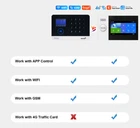 Advantage of 4G alarm system: Australia, United States, Canada has cut the 2G sim card service. And United Kingdom, Mexico, Euro Union, ect will cut the 2G sim card in coming years. Without 2G networks, 2G/GSM only alarm system will fail to achieve it's major function, remote control through calls and SMS. To provide customers with longer alarm system lifespan, our company is launching a series of it's 4G alarm system which are both 4G/3G/2G(GSM) Network compatible. The 4G alarm system will work with United States, Australia, United Kingdom, Euro Union, Canada and most countries' 4G Sim card(Except China, Japan and Korea). The 4G alarm system support use 4G sim card to receive SMS message or phone call to remote control the alarm system(2G alarm system not support sim card function). Product Overview Tuya APP IOS/Android 4G+WIFI Home Alarm System Auto Dialer Details Package Including: 4G+WiFi Alarm System Main Panel * 1 Pcs Wireless PIR Infrared Detector * 3 Pcs Wireless Door / Windows Sensor * 3 Pcs Remote Control Key * 2 Pcs RFID Tags * 2 Pcs Wired Siren * 1 Pcs(110dB) Built-in Siren * 1 Pcs(85dB, the siren is built-in main panel) AC Adapter * 1 Pcs English User Manuel * 1 Pcs (NOT Including 4G Sim Card) Question and Answer: Q: What kind of Sim Card support? A: The alarm system is 4G version, it support 4G+3G+2G(GSM) Sim Card, the sim card detailed I have writed in the description. Q: Can this alarm system work with Amazon Alexa or Google Home? A: Compatible with Alexa and Google home: This alarm sysetm works with Amazon Alexa and Google Home for voice control ( Alexa and google home devices not included ). Just ask app Alexa on your phone to Arm / Disarm/ the whole system in a specific instruction like "Alexa, please arm the alarm system". Remote control your Alarm system anywhere in the world with your smart cell phone, no need repeated operation! Q: Can this alarm system work with WIFI and 4G Sim Card together? So if the WIFI failure, can switch Sim Card mode to work. A:Yes. User can connect alarm system with WIFI and 4G Sim Card to work. And when Alarm System be triggered, it will push alarm message to the APP via WIFI. And if the WIFI failure, will change Sim Card mode auto Dial Out. Q: It just with WIFI in my house and without 4G Sim Card,can I use this alarm system? A: Yes. Alarm System can work in WIFI mode only. The alarm system only support 2.4G WiFi, NOT support 5G WiFi. Q: Can I add additional remote controllers, door sensors, pir sensors, smoke detectors, gas detectors or other sensors to work with this alarm system? A: Yes. Alarm system can work up to 99 wireless sensors(wireless freq 433MHz) and wireless Siren, unlimited Wifi Camera. Q: Does the alarm panel with backup battery? A: Yes. Alarm system with internal rechargeable backup battery. It can support work when AC Adapt is cut. Q: What's the function of RFID Tags? A: It used to touch the main panel to arm or disarm soon and easily. Main Function And Feature: 1. 4.4 inch TFT display screen, concise user interface and menu hint design 2. Main interface status bar, date/clock indication, fairly obvious alarm host status. 3. Built-in powerful performance CPU master based on 32-bit Cortex-M3 core 4. Based on u cos – III operating system with multitasking design, great user operation experience 5. WiFi/4G/3G/2G(GSM)/GPRS intranet alarm system, support different alarm channels, like APP push/SMS/voice monitoring/intranet center etc. to ensure the alarm performance stable and reliable 6. Support SMS arm/disarm and voice arm/disarm 7. Support up to 100 learning/storage location for remote control, RFID cards and wireless detector 8. Support many defense zones, such as gate, SOS, bedroom, window, balcony, perimeter, smoke, gas, carbon monoxide, water leaking, etc. 9. Support the main power malfunction, backup power shortage, tamper alarm and other extended alarm. 10.Support entry/exit zone, indoor zone, perimeter zone, 24-hour zone, etc 11.Up to 5 groups preset alarm phone numbers, SMS on/off and dial on/off can be set respectively 12.Support external wireless siren, Support timing arm and disarm 13.Can store and inquire daily operation records and alarm records. 14.4G/3G/2G(GSM) network clock synchronization, to ensure accurate color, and support country time zone setting. 15.Support multi-language menu display, voice prompts and alarm SMS setting. 16.Can record 20 seconds voice message and alarm voice. 17.Telephone function, support 5 groups re-dial number. 18.User-friendly APP operation experience and user interface. Push Arm/disarm message to app. 19.Support APP remote arm/disarm, parameter setting and accessory management. 20.Online GPRS to obtain equipment status, automatic alarm when offline. 21.Reserved remote GPRS TCP / UDP protocol channel, compatible with multiple alarm center networking protocol to facilitate network alarm. Item Specification: 1. Home Alarm System Main Panel(Including Back-Up Battery and built-in siren) Support 100 Wireless Zones and 4 Wired Zones Wireless Frequency: 433(MHz) Built-in siren(85dB/m) Standby Current: less than 35mA Alarm Current:less than 120mA 4G transmission power: 2W WIFI Frequency: 2.4G, built-in wireless internet protocol IEE802.11b/g and TCP/IP protocol stack WIFI receiving sensitivity: -86dbm; Emitting power: 18dbm Input:AC100-240V, Output:DC12V-1A Control Range:250-500 Ft(in open area) Working Temperature: -15C~55C(5F~130F); Humidity:Less than 90% 2. Motion PIR Infrared Detector(with Battery Included) Wireless Frequency: 433MHz Standby Current: less than 12uA, Alarm Current:less than 15mA Operation Temp: -10C~50C;Humidity:≤90% Installation Height: About 2M. Installation Angel:About 60~110 Detecting Distance: 5-8M Transmission Time≧1s Transmit Distance: Outdoor 100M(in open area), Indoor:10~15M 3. Door / Window Sensor(with Battery Included) Wireless Frequency: 433MHz Operation Current:8~15mA, Quiescent Current:3uA Operation Temp: -10C~50C;Humidity:≤90% Installation: le