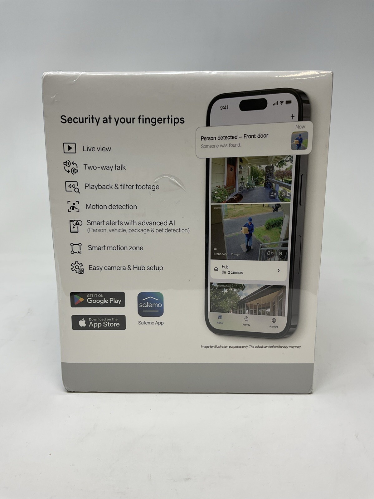Introducing the SAFEMO 4K Wireless Security Camera and Hub set, perfect for both outdoor and indoor surveillance. This set includes two cameras and a hub, all powered by solar panels with a 5W power output. The SmartCam model features advanced Ai Motion detection and 2-way audio for clear communication. With Wi-Fi connectivity, these cameras can easily be accessed and monitored remotely. The cameras are also weatherproof, making them ideal for outdoor use. The set comes in a sleek white color, and the brand is SAFEMO. Perfect for anyone looking for a reliable and sustainable surveillance solution.