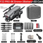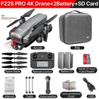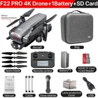 Features: 1.4k Drone: 2 -Axis Electronic Stabilization Gimbal Real 4K Drone Camera.HD wide Angle 100°, adjustable camera 80°. Gesture shooting and recognition: within 1-3m distance from the aircraft, make photo gestures/camera gestures in front of the camera. 2.Professional drone: Multi-point route planning flight: The aircraft flies autonomously according to the preset route, and the player focuses on shooting. fixed point surround: find the center of the surround, and then move the desired radius through the rocker.Picture and video sharing: Single or multiple selection to share photos, video can only be shared single time. 3.GPS Drone: Drone GPS one-click return to take off point, low power return, no signal return.①GPS intelligent following; ② Image following: identify the object and automatically follow the flight.Aircraft retrieval function: Click the GPS signal icon for three consecutive times to open the map interface, and the map shows the last distance of the aircraft latitude and longitude. 4.Drone with Long Flight Time: 11.1V pluggable intelligent lithium battery.Flight time About 30-35 min 5.Foldable Drone: Product Size Unfolded: 350X350X80MM , Folded: 210X95X80MM Notes : F22S 4K pro models laser obstacle avoidance function. F22 without. Description: SJRC F22S/F22 PRO RC 4k WIFI drones with camera for adults professional.HD obstacle avoidance foldable quadcopter drones with long flight time about 30-35 min.2 -Axis electronic stabilization gimbal real 4K camera.HD wide angle 100°, adjustable camera 80°. Gesture shooting and recognition: within 1-3m distance from the aircraft, make photo gestures/camera gestures in front of the camera.GPS one-click return to takeoff point, low power return, no signal return. Specifications: Brand: SJRC Item Name: 4K GPS Drone Item No: F22S/F22 4K Pro Color: Silvery Grey Operating Frequency: 2.4G + digital image transfer Bridge Drone Battery: 11.1V 3500mAh Control Distance: 3500m(Outdoor and unobstructed,depend on the environment and mobile device) Wifi Image Transmission Distance :3500m(Outdoor and unobstructed,depend on conditions and mobile device) Flight Time: About 30-35 min Charging Time: About 4.5 hours USB Charging: 5V/3A F22 remote control battery: 3.7V 1500mAh (soft pack lithium battery) F22S remote control battery: 3.7V 3000mAh (cylindrical lithium battery) Remote control Charging Time: About 2 hours Remote control Operating Time: About 2 hours Camera: 2 -Axis Electronic Stabilization Gimbal Real 4K Camera Camera Lens: FOV:100° Photo resolution: 3840* 2160P(phone) / 3840*2160P(SD card) Video resolution: 1280*720P(phone) / 3840* 2160P(SD card) Frame Rate: 30fps Photo Format: JPG Video Format: MP4 Mechanical Range & Control Range : Tilt(X): -35° - +35° Roll(Y): -100°- +70° Adjustable Angle: -80°- +0° Gesture Shooting: 1-3M Image Recognition Follow Me: 3-10M GPS Follow Me: 10-100M SD Card 32G-128G(Not Included) Mobile Device System Version iOS 9.0 or later / Android 5.0 or later Product Size Unfolded: 350X350X80MM , Folded: 210X95X80MM Product Weight: 585 g Package Included: As you choose. Note: Only the above package content, other products are not included. 1.Due to the difference between different monitors,the picture may not reflect the actual color of the item. We guarantee the style is the same as shown in the pictures. 2.Due to the manual measurement and different measurement methods, please allow 1-3mm deviation.Thanks! Before purchase: 1.All the goods are ready stock, we will arrange the shipment at once if we receive the order. 2.Please read the item description, if you have any question, do not hesitate to contact us. 3.No worry,if you receive a defect item,please contact us at once with item picture. 4.Use the vouchers for more saving. After purchase: 1.If you are satisfied,please express your use feeling. 2.Please contact us before you are going to give us bad review. We are helpful and will solve the problems. 3.If you receive a defect item,please contact us at once with item picture or video.