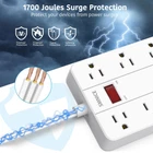 SMNICE Power Strip with USB,Surge Protector Flat Plug with 8 Widely Spaced Outlets and 6 USB Ports(1 USB C), 5ft Extension Cord Wall Mountable Phone Tablet Laptop Computer Multiple Devices MORE BENEFITS USB C Charging Station:This USB charger will detect your devices automatically ( USB A ports can charge up to 2.4A ), and the USB C port can charge up to 3A;6 USB ports ( Total 5V/3.4A 17W)fit for your phone, Tablet, Fire Stick, E-reader,Portable Speaker etc Flat Plug Power Strip and Wall Mountable : With only 0.35 inch ultra slim design, this surge protector power strip has a flat plug in real sense,so that it could be easily hide in the back the furniture, beds or refrigerators.There is 2 hook hole for wall hanging on the back, so you can use it hanging on the wall, It can be easily placed anywhere on the desk or on the wall Multi Outlets Power Strip:This power strip with USB C has 1080 joule surge protection to protect your high-end electronics from sudden power surges and spikes,integrated circuit breakers will automatically trip to protect your devices when the power is overloaded Widely Spaced Outlets Fit for Big Plugs:8 AC power sockets are designed to be wider, so the power adapters will not interfere with each other,Ideal for multiple devices charge together, whether as a desktop power strip or a nightstand charging station, it can be competent Multiple Safety Protection:The extension cord is lightning protection,surge protection,overload protection, and fireproof.An integrated circuit breaker will trip off automatically to protect your devices while the power overloads