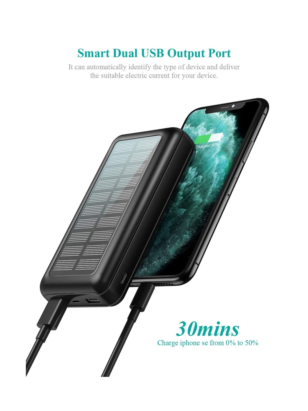 Portable Charger Power Bank 30000mAh - SOXONO Solar Charger, 2 USB Ports High-Speed Panel External Battery Pack for iPhone, Samsung Galaxy and More Product Details Product Dimensions: 6.3 x 1.97 x 2.36 inches Item Weight: 1.1 pounds Item model number: XN-828P Batteries: 1 CR123A batteries required. Date First Available: November 19, 2020 Manufacturer: Dongguan Xionel Electronic Technology Co., Ltd Country of Origin: China 30000 mAh Huge Capacity Power Bank: Portable Charger 30000mAh high capacity allows to charge your devices multiple times. Like iPhone, Samsung Galaxy, GOPRO etc. A must accessories for beach, camping, hiking, fishing, climbing, boating. Dual Outputs and Inputs Charging Bank: With dual outputs (2.1 A high speed USB ports), it allows you to charge 2 devices at the same time! It can charge for iPhone11 Pro up to 7.4 times,iPhone12 Pro up to 5.6 times, Galaxy Note 20 up to 4.8 times. Solar Chargers for Outdoor: It is convenient for you to carry it when you are doing outdoors activities; like camping, cycling, fishing, traveling, hiking and beaches. due to these variations in sunlight intensity and the solar panel conversion rate, it may take a long time to charge the battery bank using the solar panels; The primary way to charge the battery bank is by USB and only use solar charging feature in an emergency. Quality Certificated External Battery: Our product has passed certifications like ul, ce, fc, rosh, etc; providing superior protection for you and your devices. built in three high quality li-polymer batteries and safeguards, longer standby time and protect your devices against excessive current, overheating, and overcharging, safe and reliable. Lifetime Friendly Customer Service: 30000 mah solar charger x 1, charger cable x 1, user manual x 1. If you have any questions, please contact us by email and we will give you a satisfactory answer within 24 hours, thank you. Specification Capacity: 30000mAh USB Output: 5V/2.1A Input: 5V/2A Charging Time: 14 hours Size: 1457227mm Weight: 436g Why Choose SOXONO 30000 mAh Power Bank: Great Gift Idea For Anyone With a Phone & Tablet! Live Freely With Lightweight Power on Your Side! Tiny Body, Big Power,Fast Charge Multiple Devices Charging Dual inputs & Dual Outputs Shockproof, Multi- Protection Battery Type: Li-polymer(Grade A rated, CE, RoHs and UL certification Read more Universal Compatibility Works with almost cell phones or smart devices, Such as iPhone, Samsung, Switch, GOPRO etc Dual Inputs & Dual Outputs With 2 USB-A Outputs, you can charge 2 phones at the same time, 1 Micro USB Input: 5V/2A and 1 Type-C Input:5V/2A, you don't need to worry about finding the right cable LED Indicator Solar charging does not need to press the switch, once the light will be charged, when the solar charge, the first indicator light is green, the light does not rent the case automatically shut off the charge, energy saving and environmental protection Read more Wear- Resistant Solar Charger Due to the high hardness surface material, even if the sun panel is scratched on the presentation in direct sunlight at the beach, it will not affect the charging of the Solar charger Safety Cells Rechargeable batteries to remove the protective circuit board is the battery cell, it is the storage part of the rechargeable battery, the quality of the battery cell directly determines the safety and quality of mobile power Package Included: 1 x 30000mah Solar Power bank 1 x USB cable 1 x User Manual Read more