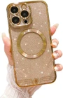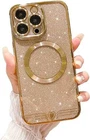 SPOBIT for iPhone 15 Pro Max Case Magnetic| Compatible with Magsafe| Glitter Clear Love Heart Case for Woman Girls| Full Camera Lens Protection Soft TPU Cover Case for iPhone 15 Pro Max - Gold