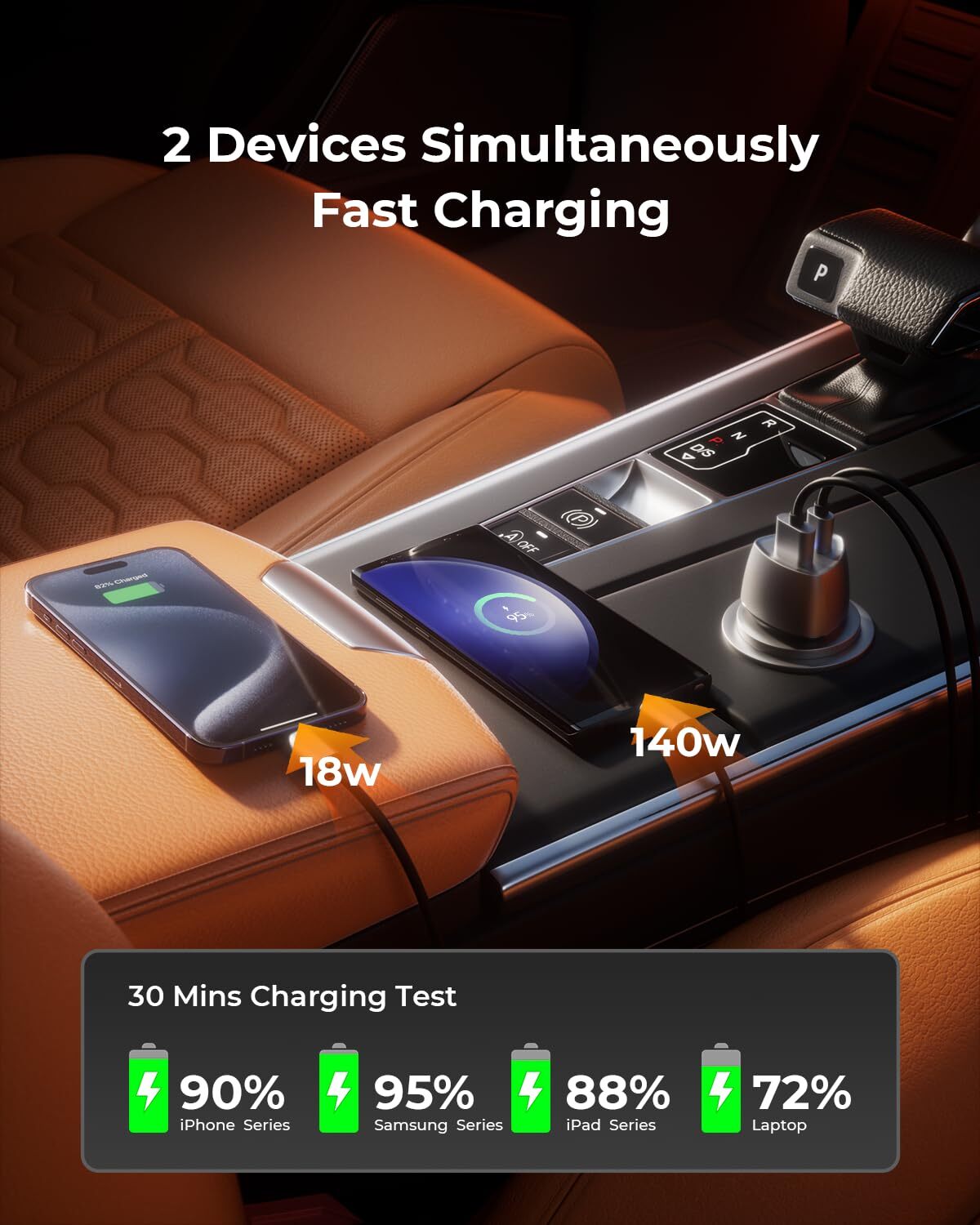 This car charger is a game-changer! It delivers blazing-fast charging for all my devices, from my iPhone to my laptop. The dual ports are super convenient, and the 140W PD output means no more waiting around. The build feels solid, and it fits snugly in the cigarette lighter without any issues. Even with both ports in use, it stays cool and efficient. Perfect for road trips or daily commutes—definitely worth every penny!