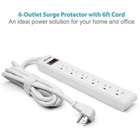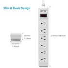 FOR SALE IS ONE (1) NEW SIX OUTLET BRIGHT WHITE color POWER STRIP WITH 200 JOULE SURGE PROTECTION AND 6 foot length GROUNDED (3 prong) POWER CORD BY BESTEK COMPANY LIMITED MPN MRJ6005 UPC# 6950334938064 . VIRGIN NEW, NEVER USED, IN FACTORY PACKAGING, UNIQUE 90° RIGHT ANGLE WALL HUGGER PLUG SAVES VITAL SPACE AND SIX (6) RIGHT ANGLE GROUNDED OUTLETS FOR ADDED FUNCTIONALITY. THIS PREMIUM POWER STRIP BY BESTEK FEATURES SIX (6) GROUNDED OUTLETS WITH AN IMPROVED RIGHT ANGLE ORIENTATION TO USE LARGER CHARGERS AND ADAPTERS, WITH A 6 foot length POWER CORD, MOLDED WALL HUGGER RIGHT ANGLE PLUG AND T STYLE, SIDE ORIENTED OUTLETS. THESE UNIQUE T STYLE, 90 degree OUTLETS ALLOW FOR USE OF APPLE COMPUTER, TRANSFORMER STYLE PLUGS AND OVERSIZE PLUGS WITHOUT LOSING A SPACE ON YOUR POWER STRIP. POWER AS MANY AS SIX APPLIANCES, HANDLES UP TO 1875 watts , WITHOUT OVERLOADING YOUR WALL OUTLET. INTERTEK LISTED, 200 JOULE SURGE PROTECTION. THIS DURABLE SLIM SIZE POWER STRIP HANDLES UP TO 1875 WATTS WITH 15 AMP OVERLOAD PROTECTION IN THE RED (lighted) ROCKER SWITCH. THE RED LIGHTED ROCKER SWITCH ALSO ACTS AS A CIRCUIT BREAKER WHEN THE STRIP IS OVERLOADED, JUST PRESS reset ON THE RED ROCKER SWITCH TO RESET THE INTERNAL CIRCUIT BREAKER. THIS BRIGHT WHITE COLOR POWER STRIP WITH SURGE PROTECTION MEASURES 10.8" long x 1.76" wide x 1.18" tall , WITH 6 foot (18 inches) length MATCHING WHITE COLOR GROUNDED POWER CORD IS 72 inches long, ALL SIX SURGE PROTECTED OUTLETS ARE THREE PRONG (grounded) OUTLETS AND WILL ACCEPT A TWO OR THREE PRONG PLUG, ALSO FEATURES A HEAVY DUTY SJT 14 gauge 6 foot LENGTH POWER LINE CORD WITH 3 PRONG GROUNDING PLUG. RED ROCKER SWITCH WITH INTEGRATED 15 AMP CIRCUIT BREAKER, EASY TO RESET THE BREAKER, TWO (2) REAR SLOTTED KEYHOLES ALLOW FOR EASY MOUNTING TO WALL OR BENCH . YOU WILL RECEIVE ONE (1) SIX OUTLET POWER STRIP WITH SURGE PROTECTION BY BESTEK, SHIPPED BY USPS FIRST CLASS MAIL..... specifications - six (6) outlet power strip with surge protection and 6 foot cord..... intertek listed (usa and canada) slim design rugged high impact, heat resistant abs plastic housing 200 joule surge protection maximum surge dissipation 200 joules 6 foot length grounded power cord molded wall hugger angle plug allows for use behind dresser, chest, bed, etc right angle receptacles allows for adapters, chargers and oversize plug use 1875 watts maximum 15 amps maximum 100~125 volts 60 Hz power strip dimensions - 10.8" long x 1.76" wide x 1.18" tall features..... 6 foot durable white cord sjt 14 gauge power cord with 3 prong grounded plug (angle style wall hugger plug) rating 100 ~ 125Vac 15A 60Hz white color rugged housing with matching color power cord two (2) slotted keyholes on rear housing for mounting to wall or bench red lighted rocker switch with simple circuit breaker reset in the red rocker switch note ..... i carry a robust selection of power strips from several manufacturers, in several configurations, just go to my store and search keywords POWER STRIP ..... B ID AND BUY HERE IN IN ABSOLUTE CONFIDENCE SINCE I HAVE THOUSANDS OF POSITIVE FEEDBACK. I SHIP WITHIN TWO DAYS OF RECEIPT OF PAYMENT, OFTEN THE NEXT DAY. $4.81 FIRST CLASS CLASS GREEN SHIPPING USING RECYCLED PACKAGING MATERIALS AND ENVIRONMENTALLY FRIENDLY MATERIALS TO ANYWHERE USA. I DO NOT SHIP ANYWHERE ELSE. NO RETURN OR EXCHANGE ON THIS ITEM, SOLD AS IS. HAVE A GREAT DAY AND THANK YOU FOR STOPPING BY....