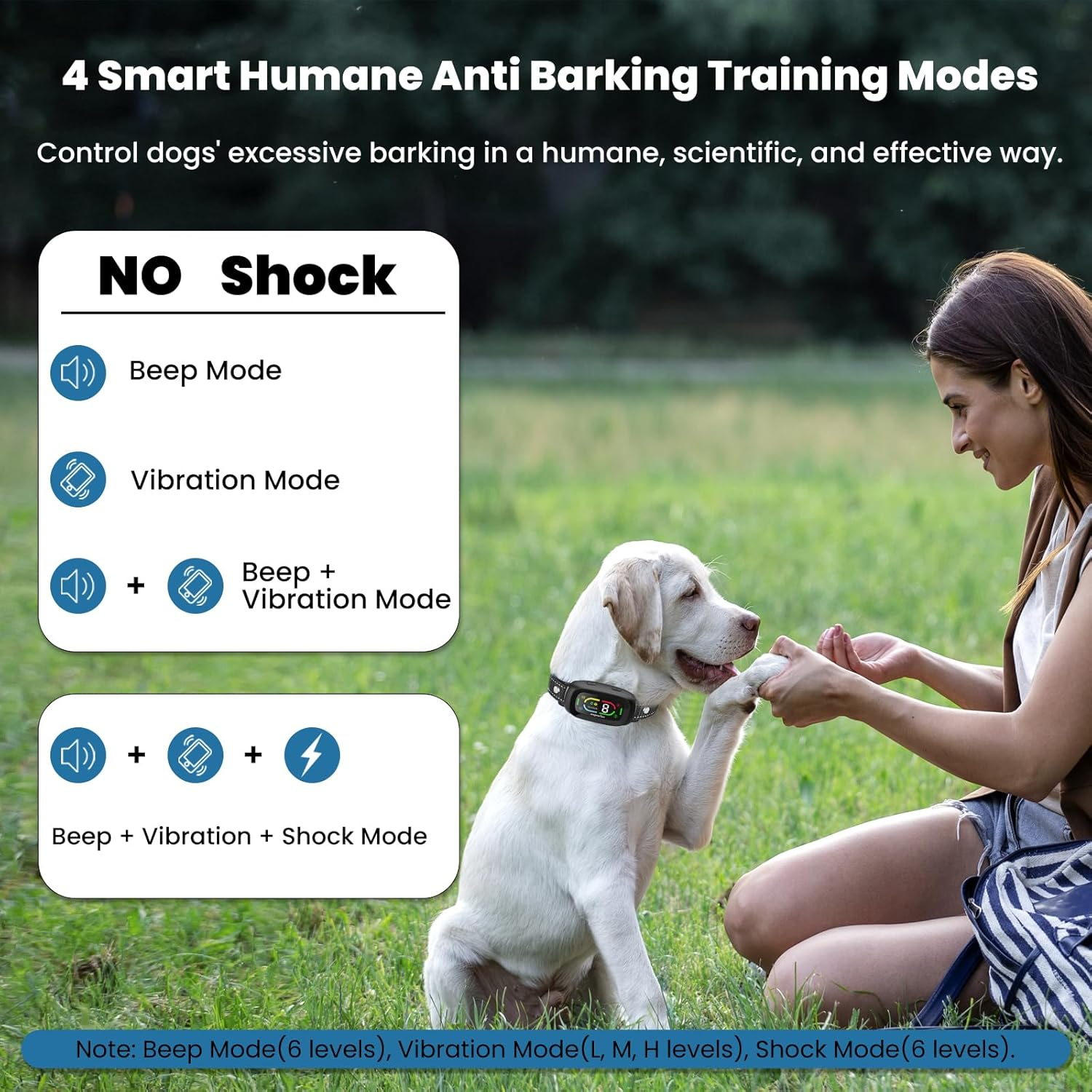 Automatic Dog Bark Collar Safe anti Barking Collar with Adjustable Beep Device 【Safe & Effective Anti Excessive Barking】Our wagnation dog bark collar is a safe and scientific tool for training your . You’ll get a well-behaved dog after using it. It is designed to curb your dog’s excessive barking effectively and create harmony in every home with a dog! 【4 Humanized Training Modes】The anti bark collar has 4 working modes(Beep, Vibration, Beep+Vibration, Beep+Vibration+Shock) and 9 adjustable sensitivity. You can switch modes and sensitivity levels just by pressing the 2 buttons on the side. 【Smart Recognition & No False Trigger】Adopts the latest anti-interference chip, the smart anti barking collar only activates when it detects your dog's vocal cord vibrations and barking. No worries for false triggering by outside noises or nearby pets, no unwanted and accidental punishment to your furry friends, and easy access to humane dog training! 【Fit For All Dog Breeds】Our automatic anti-barking collar with an adjustable size of 8-24 inches, which is perfectly fit for dogs of any breed over 6 months old and weighing 10-150 lbs. In other words, you can effortlessly adjust the collar size as your dog grows! 【Durable & IP67 Waterproof】This bark collar is crafted of soft and odor-free nylon, durable and skin-friendly. Combined with the IP67 waterproof level, your dog will feel free to enjoy bathing, showering, swimming, or playing in the rainy or even snowy weather! And you can also train your pets anytime you want! 【Long Lasting Battery & Quick Charge】Adopting the newest magnetic charging port, the dog bark collar can be fully charged in 2 hours, and its working time is up to 15 days. You can see the remaining power, current mode, and sensitivity level on the LED screen for a simple, intuitive, and convenient user experience! 【Warm Tips】1. Please measure your dog's neck circumference and weight before purchasing to ensure that our collar is suitable for your dog and avoid inappropriate size. 2. Please check the charging port to ensure that it is in a charging state and avoid accidental disconnection at the magnetic port while charging. Product Description Our bark collar is suitable for dogs aged 6 months and older, neck circumferences between 8-24 inches and weighing between 10-150 pounds. Warm Tips: 1. Please measure your dog's neck circumference and weight before purchasing to ensure that our collar is suitable for your dog and avoid inappropriate size. 2. Please check the charging port to ensure that it is in a charging state and avoid accidental disconnection at the magnetic port while charging. Item model number AD-S02 Age Range Description Dogs 10-150lbs Warranty Description 12 months warranty Number of Items 1 Country of Origin China Target Audience Keyword Dogs, dogs, dog Breed Recommendation Over 6 months old Large, Medium, and Small Breeds dogs Material Nylon Item Display Dimensions 4.13 x 3.15 x 1.97 inches Model Name AD-S02 Directions 2. Not leaving the collar on your dog over 12h per day(Better within 6h)., 1. Do not use the bark collar on dogs aged below 6 months. Package Dimensions 4.21 x 3.23 x 1.97 inches; 5.61 ounces Item Package Dimensions L x W x H 4.21 x 3.23 x 1.97 inches Included Components 1* Anti Barking Collar, 1* Charging Cable, 1* Test Bulb Tool, 4* Metal Prongs(2* Long and 2* Short), 4* Silicone Cover(2* Long and 2* Short), 1* User Manual Closure Type Buckle Care Instructions Hand Wash Item Weight 5.6 ounces Specific Uses for Product Training, Anti Barking, Outdoor, Behavior, Indoor Color Bark Collar Complimentary Shipping and Easy Returns Need to return something? Enjoy our 30-day hassle-free return policy! Take advantage of free shipping across all 48 contiguous states! Your order will be dispatched within 1-2 business days once payment is confirmed. Your Opinion Matters! Your happiness is our main goal! We welcome your feedback! If you encounter any problems, reach out to us right away, and we’ll be here to help. Explore the Extraordinary! Our collection showcases fascinating products that are sure to capture your attention. What surprises await you? Delve in and discover unique items that enrich your daily life. Don't miss the amazing things we have in store for you!