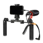 Saramonic Since their founding in 2014, Saramonic USA has established a solid reputation as a manufacturer of innovative audio gear, yet with cost effective designs, that combines great quality with great pricing. Specializing in providing high-quality audio gear for professionals and consumers alike is our goal. Saramonic VGM Smartphone/Camera Vlogging & Video Production Kit with Adjustable Dual Stabilizing Grips, Shoe Mounts & Vmic Mini Microphone The Saramonic VGM is a versatile vlogging and video production solution for smartphones and cameras. A complete stabilization, mounting rig and microphone bundle, it provides users everything they need for great sounding and stable video whether they are filming with Smartphones or Compact Digital, Mirrorless, DSLR and even Action Cameras. Giving content creators and videographers the great sound, steady shot and accessory mounting needed, with flexible customization options for any shooting style or device. Stability and Flexibility Getting a steady shot so important and the VGM provides rock-solid stabilization for handheld shooting in a lightweight and fully customizable package. It features a 4.72” shoe mount top rail, with 2x 4.72” slidable bottom rails with 7x 1/4”-20 threaded holes, 2x cold shoe mounts, 2x grip handles and a wrist strap. It also includes both an adjustable clamp for smartphones and a 1/4”-20 mount for cameras. It can be configured from a minimum width of 4.72” to a maximum width of 12.4”, so you can configure the VGM anyway you like for your shooting needs. Whether you need two hand stabilization with numerous accessories for a cinematic shoot, or just a single-grip stabilization for a vlog, the Saramonic VGM is the only rig you need. High-Quality Sound for Smartphones and Cameras Great audio is just as important as a steady shot, that’s why the VGM comes with the Saramonic Vmic Mini. A broadcast-quality, camera-mountable cardioid condenser mini shotgun microphone. It features all-metal construction, a rugged integrated shock mount, an advanced windscreen and includes both TRS and TRRS output cables. It delivers detailed, crystal-clear sound to cameras with 3.5mm mic input and smartphones with a 3.5mm headphone jack. No headphone jack on your phone? No problem… You can also easily pair it with a Lightning or USB-C dongle (not included) for mobile devices with no 3.5mm input. Unrivaled Mounting and Expandability Options The VGM’s shoe mount top rail, sliding bottom rails, cold shoe mounts and handgrips give users tremendous mounting and expandability options. Mount a compact LED light, an HDMI monitor, an audio mixer, a power bank, a wireless microphone receiver and much more, even at the same time. Both handgrips also feature 1/4"-20 bottom threads allowing you to easily mount the VGM to a tripod or stand and add even provide more accessory mounting capabilities. The options are nearly limitless. A complete stabilization, microphone and accessory mounting solution for Smartphones, Compact Digital, Mirrorless, DSLR and Action Cameras Includes the Saramonic Vmic Mini camera-mountable cardioid condenser mini shotgun microphone for detailed, broadcast quality sound to smartphones and cameras Completely customizable rig that offers one or two hand stabilization and multiple configuration options to meet your shooting needs from vlogging to cinematic filmmaking Numerous accessory mounting and expandability options for LED lights, HDMI monitors, audio mixers, power banks, wireless microphone receivers and much more. Uniquely versatile, the VGM can be configured from a minimum width of 4.72” to a maximum width of 12.4” within seconds and can be easily mounted on a tripod or stand Specifications: Grip Rig Kit: Maximum Capacity: 11lbs (5kg) Shoe Mount Top Rail Slider Track Length: 4.72” (120mm) Slider Bar Rails Length: 4.72” (120mm) Slider Bar Mounts: 7x 1/4"-20 Female Threaded Mounts Maximum Width with 2 Rails: 12.4” (315mm) Minimum Width with 2 Rails: 9.45” (240mm) Minimum Width with 1 Rail: 4.72” (120mm) Grip Rig Kit Height with Smartphone Mount: 9.13” (232mm) Grip Rig Kit Height with 1/4”-20 Mount Only: 6.1” (155mm) Grip Rig Weight: 17.4oz (494g) Total Weight with Grip Rig, Vmic Mini, Windscreen & Cable: 20.7oz (586g) Vmic Mini Microphone: Type: 14mm Unidirectional Condenser Microphone Frequency Response: 75Hz to 20kHz Sensitivity: -35 ±3dB (0dB = 1V/Pa, @ 1kHz) Maximum Input SPL: f=1kHz, THD<5% (105dB) Output Impedance: 200ohm Signal-to-Noise Ratio: 75dB SPL Power Requirement: Plug-in-Power from Camera or Device Included in kit: 1 x Shoe Mounted 1/4”-20 Post Adapter for Cameras and Smartphone Clamp 2 x Cold Shoe Mount 2 x Hand Grips 2 x Screw Mounts 1 x Wrist Strap 1 x Vmic Mini Microphone 1 x Fitted Foam Windscreen 1 x 3.5mm TRS to TRS Output Cable 1 x 3.5mm TRS to TRRS Output Cable 1 x Printed Manual Recommended Accessories: SR-C2000 3.5mm TRS Male to Lighting: Microphone Adapter Cable for iOS Apple Devices SR-C2001 3.5mm TRS Male to USB-C: Microphone Adapter Cable for Smartphones & Tablets with USB-C Item Condition Item is new in unopened package. About Us We have been in the photo business for 45 years and selling on eBay for over 20 years! We have the highest eBay seller rating demonstrating our commitment to deliver the very best customer service while offering the best in photographic accessories. We strive to deliver the very best in quality merchandise at competitive prices, knowledgeable advice, low cost shipping, and the least amount of hassle for you, our customer! I think our feedback shows we have accomplished this. We thank the thousands of customers that have helped us reach this milestone and hope that we can continue to serve the eBay community for many years to come. The Philly Photo Promise We do not sell any products that we would not use ourselves. We are photographers first and retailers second. We primarily sell what we know; photographic equipment! We thoroug