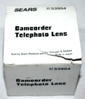 Sears Camcorder Telephoto Lens Model No. 57-53954 = Excellent Condition! However, the box lid is torn. If you have any questions and/or would like to see more pictures, please let me know. Thank you for stopping by. (D-8) We combine shipping to help you save money! We do NOT ship on Saturday, Sunday, nor Holidays...that's family time! Please Relax!!! Refunds are available for any reason upon return of item.
