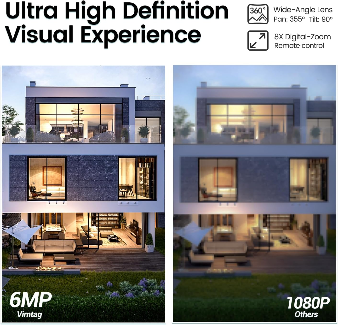 Store New Arrivals Add to Favorite View Feedback Contact Security Camera, 3.5K/6MP 360° Outdoor/Indoor Wired Plug-In 2.4G Wi-Fi Camera with Spotlight/Night Vision/Pan/Tilt/Speaker/2-Way Audio/Phone App/Human/Sound/Motion Detection for Home Security Description Item model number 847 Photo Sensor Technology CMOS Number of Items 1 Power Source Corded Electric Maximum Webcam Image Resolution 6.4 MP Country of Origin China Flash Memory Supported Size Maximum 512 GB Night Vision Range 33 Feet Unit Count 1.0 Count Connectivity Protocol Wi-Fi Wireless Communication Technology Wi-Fi Video Capture Format MPEG-4 Product Dimensions 3 x 3 x 5.1 inches Installation Type Screw In, Surface Alert Type Motion Only Form Factor Dome Specific Uses For Product Surveillance, Home Security, Pet/Baby/Dog/Cat Care Item dimensions L x W x H 3 x 3 x 5.1 inches Indoor/Outdoor Usage Outdoor, Indoor Video Capture Resolution 3.5K / 6 MP Batteries Required? No Room Type Office, Garage, Store Room, Living Room, Classroom Item Weight 9.9 ounces Connectivity Technology Wi-Fi, Wire Plug-in Effective Still Resolution 6.4 MP Special Feature Easy to Install, Waterproof Mounting Type Tabletop/Wall/Surface/Tree/Ceiling Mount Color 3K/6MP Compatible Devices iPhone, iPAD, Android Phone, Android Pad, Mac, Windows Flash Memory Type Micro SD Voltage 5 Volts (DC) Recommended Uses For Product Indoor/Outdoor Security, Pet/Baby/Dog/Cat Care 【Full 3.5K/6MP HD and 355° Pan/Tilt】: The Security Camera provides 8X digital zoom, 3.5K/6MP HD crystal clear smooth live video with 360° horizontal and 100° vertical rotation range, covering every corner of your home, monitor your pets, baby day all time. Wifi Camera works with 2.4G WiFi. 【Outdoor and Indoor Use with Night Vision】The Waterproof Camera for Home Security to help you protect your home inside or out, come rain or shine, night vision with IR light and Color Night Vision with Spotlight. Its trendy look will harmonize with your home decoration style. 【AI Human/Motion/Sound Detection Alarm】: This Outdoor Security Camera with Phone App, the Vimtag app will send you a notification and raise siren when AI human/sound/Motion detection raised, just open it to check quickly what is going on, you will not miss any important movements of your pets. 【Two-way Audio & Works with Alexa】: The Security Camera built-in microphone & speaker, allowing you to keep in touch with your baby while you are out. Works with Alexa, ask Alexa to show your doorway, living room, or anywhere else you have this dog camera. 【Local SD Storage 24/7 & Optional Cloud】: Financial encryption video storage technology enables the security camera to keep a private recording in the Vimtag cloud, meanwhile you can choose an SD card (not include) up to 512G to avoid any possible risks, managing 24/7 record absolute protection for your family, baby and pets. Product Description 3.5K/6MP Outdoor Security IP65 Waterproof Cam See Every Detail, Secure Every Moment! Smart Detection & Real-time Alerts When a moving object is detected, the camera will push it to you in real time via the Vimtag app. Spotlight Warning Built-in dot-matrix spotlight, when the camera detects an abnormal situation it will immediately light up and send a warning to the Vimtag APP, which can guard your safety even in the dark night! H.265 High Efficiency Video Coding Provides higher video compression efficiency and better video quality. Support Multi-device Share live footage with family and friends anytime, anywhere! Easy Setup, Stable Connection Connect Power Connect the machine to the power supply. Download App Download " Vimtag " APP and sign up. Add Camera Follow the prompts to add security cameras. Start viewing Place anywhere in your home and enjoy. Comparison of other Vimtag products Add to Cart Add to Cart Add to Cart Add to Cart Add to Cart Add to Cart Customer Reviews 4.0 out of 5 stars 21 4.0 out of 5 stars 38 4.3 out of 5 stars 92 4.2 out of 5 stars 4,922 4.0 out of 5 stars 159 3.7 out of 5 stars 32 Price $99.99 $ 99 . 99 $99.99 $ 99 . 99 $99.99 $ 99 . 99 $119.98 $ 119 . 98 $99.99 $ 99 . 99 $119.99 $ 119 . 99 Video Resolution 3.5K/6MP 3.5K/6MP 3.5K/6MP 2.5K/4MP 3.5K/6MP 3.5K/6MP Wireless Connectivity 2.4Ghz WiFi 2.4Ghz WiFi 2.4Ghz WiFi 2.4Ghz WiFi 2.4Ghz WiFi 2.4Ghz WiFi Intelligent Detection Human/Motion/sound activated Human/Motion/sound activated Human/Motion/sound activated Human/Motion/sound activated Human/Motion/sound activated Human/Motion/sound activated Night Vision IR/Color (spotlight on) IR/Color (spotlight on) Starlight Night Vision Starlight Night Vision IR Night Vision IR Night Vision Power source Plug-in Light Socket Plug-in Plug-in Plug-in Plug-in Pan/Tilt Horizontal:355° Vertical:90° Horizontal:355° Vertical:90° × × Horizontal:355° Vertical:115° Horizontal:355° Vertical:115° Weather resistant IP65(Outdoor) IP65(Outdoor) IP66(Outdoor) IP66(Outdoor) IP40(Indoor) IP40(Indoor) Works with Alexa ✔ ✔ ✔ ✔ ✔ ✔ Siren Alarm ✔ ✔ ✔ ✔ ✔ ✔ Does this camera support 5GHz WiFi? Currently, it only supports 2.4GHz WiFi connections and does not support the 5GHz band. The 2.4GHz WiFi has stronger signal penetration and a wider coverage range. Is this camera wireless? The camera needs to be connected to the E27 port for power and a wireless network connection via 2.4GHz Wi-Fi. Does it support local storage using a MicroSD card? The camera supports up to 512GB MicroSD cards, which must be purchased separately.The SD card slot is located under the waterproof cover on top of the lens. Insert the card as instructed and disconnect the power before operation. How do I reset the camera? The reset button is located on top of the camera lens. Open the waterproof cover by tilting the lens downward. To reset, press and hold the button for 6 seconds while the camera is powered on. Is it mandatory to subscribe to the cloud storage service? Subscribing to the cloud storage service is not mandatory; you can use an Mi