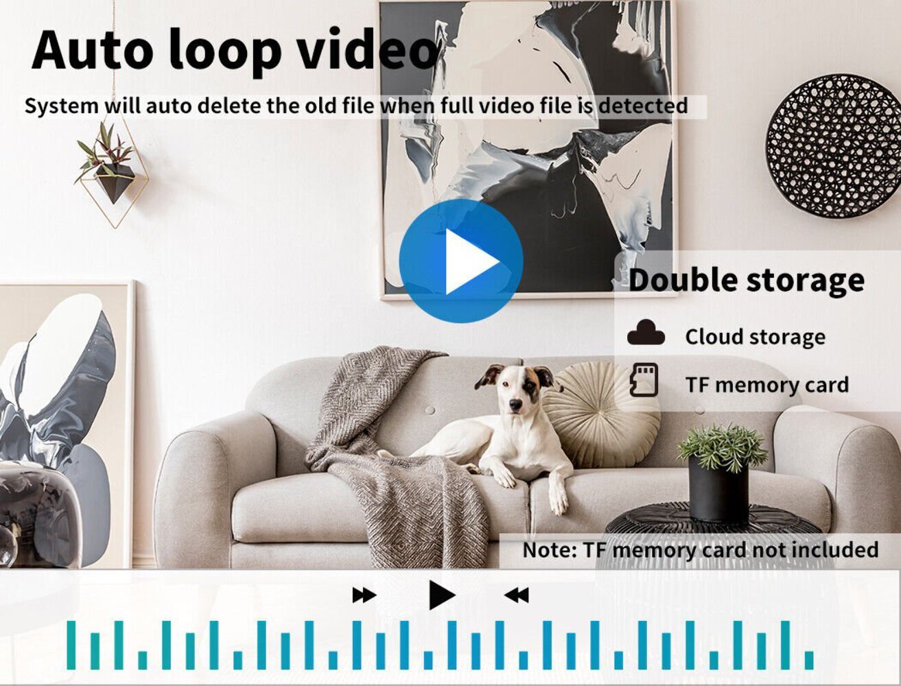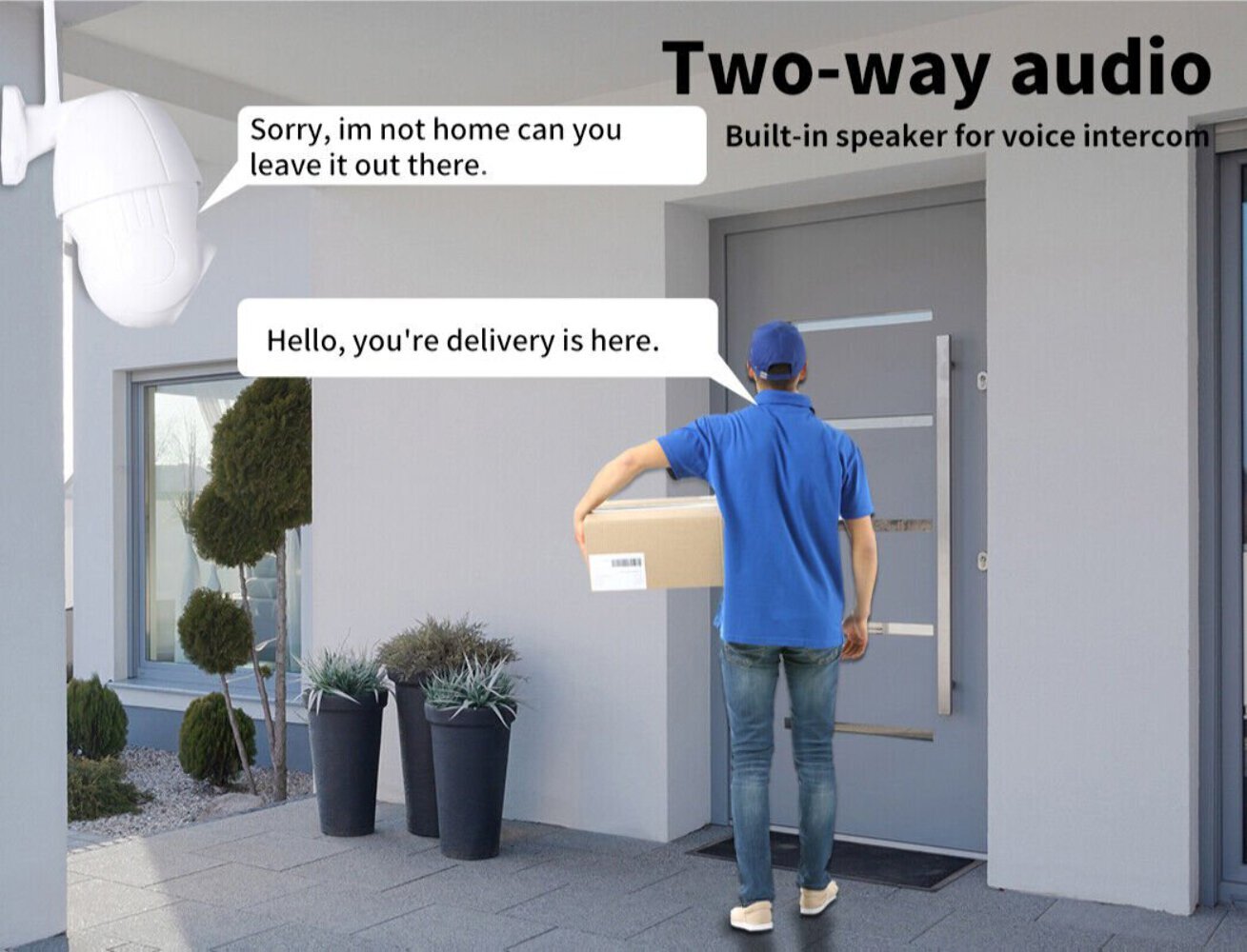 Security Camera CCTV Wifi 1080P Waterproof Outdoor with Night Vision No matter where you are, always keep a watchful eye with our Wireless IP Camera. A portable solution for all your home surveillance needs. With ever-increasing home burglaries and invasion, it is vital for a modern house to be equipped with sophisticated technologies. One such product that helps you avoid many high-risk situations is setting up a camera. You may be wondering with so many variants of cameras available in the market, what’s special with this? Our product is a perfect combination of usability and practicality. Its great portability offers easy installation combined with minimal effort of handling. Featuring a state-of-the-art HD camera system that gives you a comprehensive and crystal-clear overview of the scene you are monitoring.Take hold of the camera using your mobile phone, simply install the app and it's ready to go. This wireless camera is equipped with intelligent controls including 360° rotation and 90° tilt. Change the angle with just simple clicks on your mobile phone. Designed to perform seamlessly non-stop with its built-in Wi-Fi system, easily connects to the local Wi-Fi signal and transmits the video straight to your mobile phone. Unlike other products of the market, we do not restrict you - It is equipped with a two-way voice intercom for those moments when you want to communicate with the delivery man or letting someone know that you are not home.To perform reliably, the entire structure is made of hardened plastic and metal. Its tough construction provides excellent waterproof and weatherproof capabilities – Whether lightning or rain it can withstand it all. Embedded with enhanced algorithms that effectively filters the noise from the feed, giving you a clear and detailed image. The camera is programmed to detect motion when activated, it can automatically raise an alarm if any movement is detected. What if it gets too dark outside? Do not worry, it comprises infrared night vision giving you 30 meters of view even at the night. It maintains a stable signal with the router using a 3D laser antenna. For the convenience of usage, it supports wired and wireless connections. Store the recording in the cloud or TF memory card.To broaden the compatibility this security camera comes with ONVIF technology to extend support for devices with different manufacturers. It creates a secure platform by using unique protocols for IP’s when communicating with multiple devices remotely thus minimizing the connectivity issues for seamless operation. This technology effectively prevents intruders from breaching in your surveillance feed by layering the input and output connections.A security check to follow, a safer surrounding to create. Set up your system, order your wireless camera now! Key Features: HD real 2 megapixel Motion-detection alarm IRCut infrared night vision 360° Pan / 90° Tilt Waterproof and weatherproof APP Control Mobile / PC view Onvif Protocol Two-way voice intercom 2 Antenna Easy connection, plug and play Ceiling, free standing, wall installation Specifications Material: Plastic and metal Pixel:2.MP Waterproof rating: IP66 Type: Security IP Camera Features: Wireless Lens: 3.6mm Infrared LED: 4 LED lights and 6 infrared arrays Technology: 360° Pan, 90° Tilt Night vision: IR-CUT automatic switching, 25m -30m ONVIF: Support Storage: Support 8-128G C10 micro SD card (Not included) and cloud storage Voltage: 12V Location: Outdoor and indoor Operating temperature: -20°C ~ +50° C Working humidity: 10%- 95% Power cable length: 38cm Dimension: 17cm x 16cm x9cm Colour: White Note: When you use the cloud storage function, please pay attention to the expiration time, once expired the previous records will be deleted! Note: Only support 2.4GHz Wi-Fi Security Camera CCTV Wifi 1080P Waterproof Outdoor with Night Vision No matter where you are, always keep a watchful eye with our Wireless IP Camera. A portable solution for all your home surveillance needs. With ever-increasing home burglaries and invasion, it is vital for a modern house to be equipped with sophisticated technologies. One such product that helps you avoid many high-risk situations is setting up a camera. You may be wondering with so many variants of cameras available in the market, what’s special with this? Our product is a perfect combination of usability and practicality. Its great portability offers easy installation combined with minimal effort of handling. Featuring a state-of-the-art HD camera system that gives you a comprehensive and crystal-clear overview of the scene you are monitoring. Take hold of the camera using your mobile phone, simply install the app and it's ready to go. This wireless camera is equipped with intelligent controls including 360° rotation and 90° tilt. Change the angle with just simple clicks on your mobile phone. Designed to perform seamlessly non-stop with its built-in Wi-Fi system, easily connects to the local Wi-Fi signal and transmits the video straight to your mobile phone. Unlike other products of the market, we do not restrict you - It is equipped with a two-way voice intercom for those moments when you want to communicate with the delivery man or letting someone know that you are not home. To perform reliably, the entire structure is made of hardened plastic and metal. Its tough construction provides excellent waterproof and weatherproof capabilities – Whether lightning or rain it can withstand it all. Embedded with enhanced algorithms that effectively filters the noise from the feed, giving you a clear and detailed image. The camera is programmed to detect motion when activated, it can automatically raise an alarm if any movement is detected. What if it gets too dark outside? Do not worry, it comprises infrared night vision giving you 30 meters of view even at the night. It maintains a stable signal with the router using a 3D laser antenna. For the convenience of usage, it suppo
