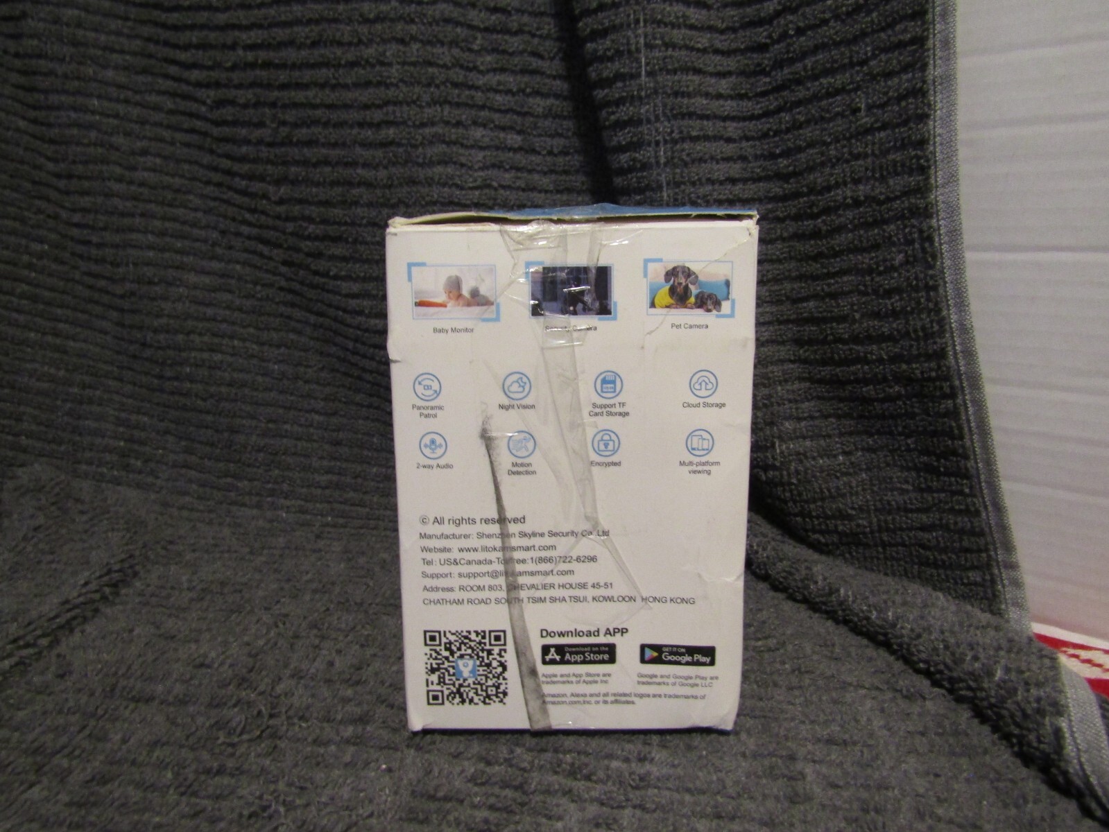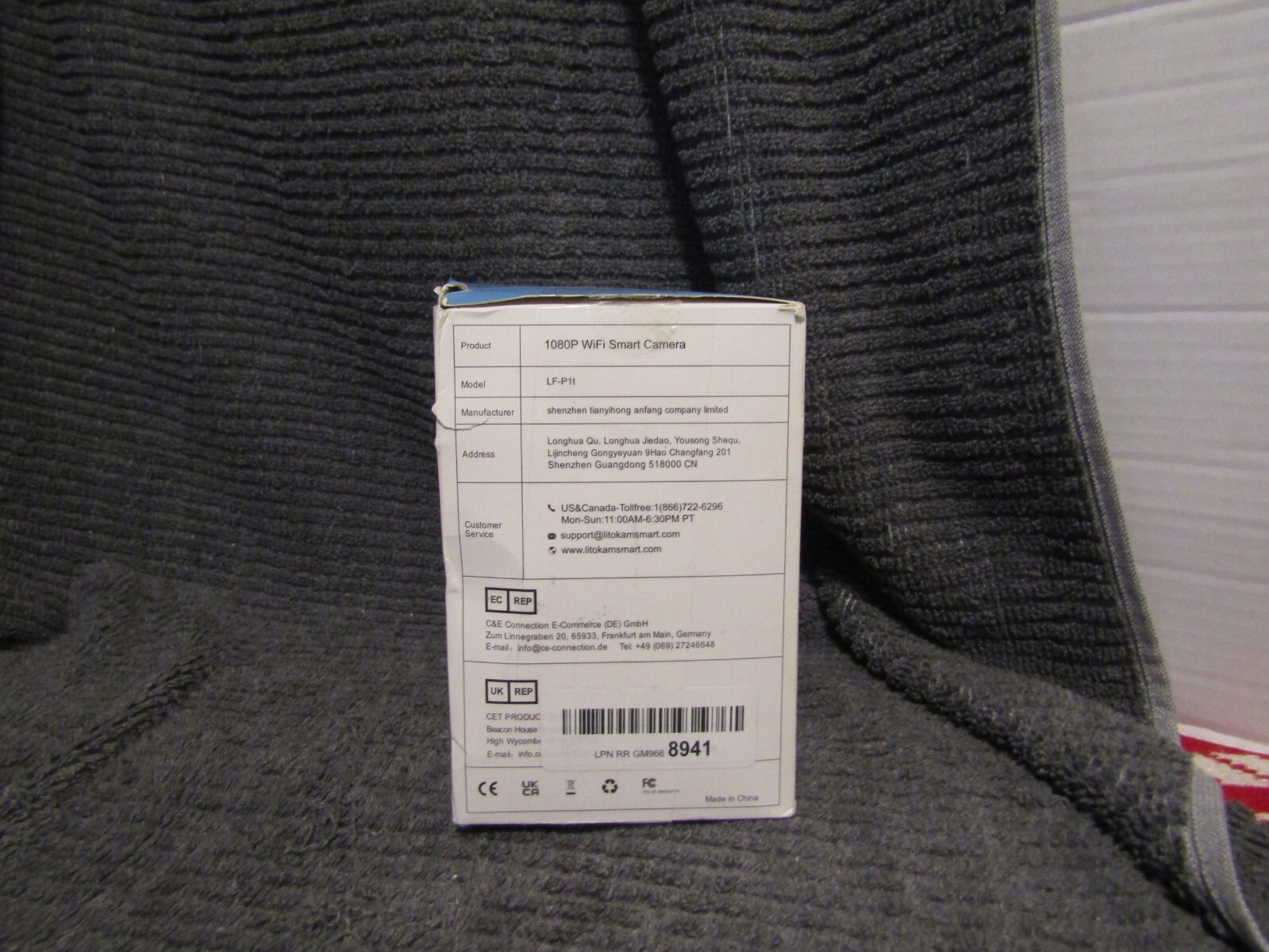 Recommended uses for product Indoor Security Brand litokam Model name LF-P1t Connectivity technology Wireless Special feature HD Resolution, 2 Way Audio, Night Vision, PTZ Technology Indoor/Outdoor usage Indoor Power source Corded Electric Connectivity protocol Wi-Fi Controller type SmartThings Mounting type Wall Mount Box has damage product is pristine.