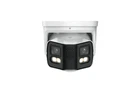 Outputs 180° wide angle splicing image. Outputs max. 8 MP (4096 × 1800)@25 fps. 3.6 mm Fixed-focal. Built-in warm light, and the max. illumination distance is 40 m (131.23 ft). H.265 codec, high compression rate, ultra-low bit rate. ROI, SMART H.264 +/H.265+, AI H.264/H.265, flexible coding, applicableto various bandwidth and storage environments. Alarm: 1 in, 1 out; audio: 1 in, 1 out; supports max. 512 G Micro SDcard, built-in Mic and speaker, support two-way talk. EPTZ: Enlarge and track the targets of intelligent alarms. SMD.