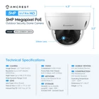 AMCREST MODEL : IP5M-D1188EW-28MM CAMERA FEATURES: High Resolution 5-Megapixel Ultra High Definition Video for Excellent Quality and Clarity, 5MP @20fps 3 Powerful IR LEDs for 98ft Night Vision 2.8mm Lens with a 103° viewing angle IP67 Outdoor Weatherproof Camera, IK10 Vandal Resistant H.265 Compression Technology This is a Power Over Ethernet (POE camera) for easy installation (POE Injector or Switch Required; Not Included, Sold Separately) Storage to PC, NAS Local, and MicroSD Card (Up to 256GB) Playback and record professionally on a PC using the Amcrest Orion Software or Blue Iris Professional Works with Amcrest Cloud remote video storage, MicroSD card, Amcrest NVRs, QNAP NAS, FTP, Pale Moon and Sea Monkey Browsers, IE, Safari, Firefox 49.0 and Chrome with Amcrest Web View Extension Compatible with the following Amcrest Junction Boxes, ASIN: B0711CPL5Z & B071L2RDK2 This product may contain components which are not NDAA compliant Dimensions: 4.4 x 4.4 x 3.2 inches Weight: 0.77 lbs PACKAGE INCLUDES: 1 x 5-Megapixel Outdoor Security Dome Camera White (IP5M-D1188EW-28MM) This Certified Refurbished product is tested and certified to look and work like new. The refurbished process includes functionality testing, basic cleaning, inspection, and repackaging. The product ships with all relevant accessories and may arrive in a generic box. EXPERIENCE ULTRA HD – Stunning low-light 5MP performance with 1/2.7” image sensor and 5MP resolution (2592x1944). Super-wide 103° viewing angle allows you to cover more ground. Power Over Ethernet (POE camera) for easy installation (POE Injector or Switch Required; Not Included, Sold Separately). This is a FIXED IP camera and has ability to Pan/Tilt manually. SMARTER SECURITY & STORAGE OPTIONS – Receive motion alert notifications and review footage via your smartphone with the Amcrest View app. Playback and record professionally on a PC using the Amcrest Surveillance Pro software or third-party software such as Blue Iris. Works with Amcrest Cloud remote video storage, MicroSD Card (up to 256GB), Amcrest NVRs, QNAP NAS, FTP, Edge, Chrome, Mozilla Firefox & Safari. DAY OR NIGHT, RAIN OR SHINE – Built to weather any storm and the darkest of nights, this 5-Megapixel Dome PoE IP Camera features a heavy-duty metal weatherproof IP67 housing & IK10 Vandal Resistant Dome as well as built-in IR LEDs and a 1/2.7” progressive image sensor to achieve unsurpassed low-light capability and night-vision up to 98 feet. Dual H.265/H.246 compression allows for maximum encryption with the latest technology as well as backwards compatibility with legacy platforms. SECURE CLOUD VIDEO BACKUP – The optional Amcrest Cloud remote video storage subscription service allows you to automatically store your videos off-site in a third-party location hosted and secured by Amazon AWS. This way if something happens to your local PC/NVR/SDcard/NAS, the footage will be safely recorded in a secure off-site location and accessible to you through a web-based Flash interface for PC (Chrome/Firefox/Safari/Edge) and AmcrestCloud smartphone app.
