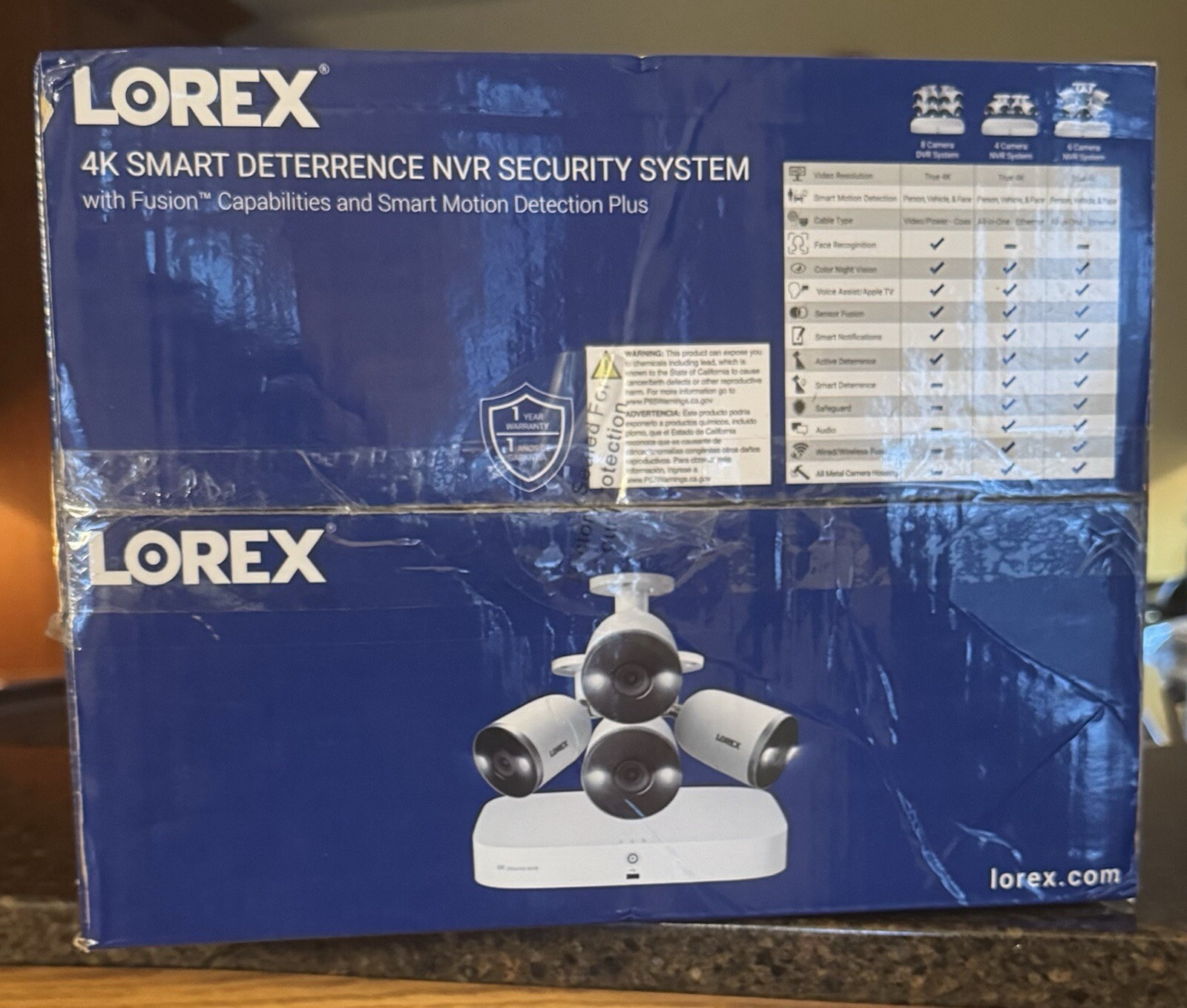 Huge Price Drop! Lorex - 4K NVR Security System with 4 Smart Deterrence Cameras, Fusion Capabilities and Smart Motion Detection Plus - White. New in box, never used. Top of box opened once for photo and resealed. Model # YN843A82-8AB4-E 4K Ultra HD video: - Capture clear visual evidence with 4K Ultra HD and advanced 16x digital zoom. Smart Motion Detection Plus: - Receive notifications on your mobile device when a vehicle, person or face is detected by the camera, reducing false alerts from other types of motion, such as animals or branches swaying in the wind. Motion-activated warning light: - The bright customizable LED light on each camera wards off uninvited guests. Remote-triggered siren: - The built-in speaker houses a remote-triggered siren that can be activated from anywhere, using the Lorex Home app. Color Night Vision™: - Make nighttime recognition of people and objects easier using clear color video in low light conditions such as porchlights and streetlights. Infrared night vision lets you see in the dark: - Keep an eye on things with long-range IR night vision up to 150 ft at night Smart Search: - Filters all motion events for reviewing footage quickly and easily Viewing angle up to 111°: - Featuring a wide 111° field of view, these cameras capture a wide-angle of your property for exceptional security at all times No monthly fees with reliable and secure local storage: - Local built-in 2TB security-grade hard drive ensures only you can access your footage. Max 8TB storage space with no hidden monthly cloud fees. Monitor your property with four cameras: - These weatherproof Ultra HD 4K security cameras boast exceptional high-definition resolution. Outdoor security cameras for all-weather coverage: - The professional-grade cameras feature lightweight vandal-resistant aluminum protected housing, each camera is IP67-rated and can withstand temperatures from -22° to 122°F. Check in anytime from anywhere with the Lorex Home app: - Get set up in an instant and stay connected with the free Lorex Home™ app. Get important motion alerts, enjoy remote live viewing in HD, and review recorded videos. View and record from up to eight channels: - Add more devices to ensure that your whole home is safe from uninvited guests. HDMI and VGA outputs: - Connect to a wide range of compatible displays for versatile viewing, including your HDTV, LCD or plasma TV. SafeGuard and Active View: - Get notified when an object is removed or left behind and follow motion by customizing motion settings Included in box: - 1 × NVR; 1 × AC power adapter; 1 × USB mouse; 1 × Ethernet cable; 1 × HDMI cable; Quick Setup Guide - 4 × 4K IP Security Camera; 4 × Mounting Kit; 4 × 100ft Cat5e Ethernet Cable; Quick Start Guides