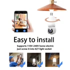 Feature: 【Easy To Install】Smart V380 Pro light bulb security camera can be installed using a normal E27 bulb base (110V~240V) and the light bulb security camera is certified by ETL/FCC/CE/ROHS. Then, this smart bulb uses the mobile phone to download the app and use the app to help the bulb camera connect to the WIFI. Remote control of light bulb switch ON/OFF. 【Motion Detection & Motion-Tracking Alerts】AI Motion Tracking Supports In A Super Large Range Of 355° And 17 Feet. You can also set different sensitivity levels (Low/medium/high) according to your needs. After Enabling, Home Security Cameras Will Begin To Record And Follow The Object In Motion Automatically, And "Alarm" When Needed. 【Two-Way Audio & Alarm Siren】wifi security camera enables you to talk with your family or visitors on your mobile Phone. You can set an audible alarm to sound a loud alarm when a moving object is detected, then a built-in advanced microphone; Speaker allows you to scare away uninvited guests, and say hello to welcome guests. 【Multi-User Sharing】This cameras de seguridad can support up to 5 users to watch the Video at the same time, so you can share the home security cameras with your family and friends, which is extra security Assured. 【High definition Image & Night Vision】The Security Cameras Support Color/Smart/Infrared Night Vision. Whether In The Presence Of Faint Starlight Or Complete Darkness, It Can Ensure That Objects Within 30 Feet Can Be Monitored, Giving You The Best Night Vision Experience. Specification: Name: bulb camera Waterproof grade: Indoor/outdoor(The indoor model is not waterproof) Storage method: TF card/cloud storage(not free) Resolution:1080 Pixel:3MP TF Card:up to 128G(Not Included) Zoom: optical zoom Power supply: E27 Connectivity: 2.4G WIFI Optical zoom: fixed focus Night vision: night vision Backlight compensation:not supported Voltage:AC110V~240V Working temperature: -25-60 Alarm function: supported Voice type: voice intercom Power: 300W Color: White Material: ABS Package Content: 1x Bulb camera 1x screw package 1x manual Q.How to install this light bulb camera? A.Setting up this light bulb security camera is super easy; just screwit into any E27 light socket. Q.Can it track and detect? A.It provides a 360 view tilt and track movement.This bulb camera also LED lights that you can control through its app,It excels at detecting people and quickly sends alerts to your phone,enhancing your safety. Q.We use the Samsung phones and I wonder if this device is not prepared for Android. ls this pairing with my phone. A.Our device supports for Samsung, for Apple, and all Android phones (If the device cannot be connected, please confirm Bluetooth is turned on, or the app permissions are fully open) Q.Can the lights be remotely controlled on/off? A.Yes Q.This camera replaces my porch light? A.This light bulb camera has Bought this to replace my current camera that doesn't have the light, because this camera replaces my porch light it was a good feature. The camera has 6 watts LED light bulb, energy-saving