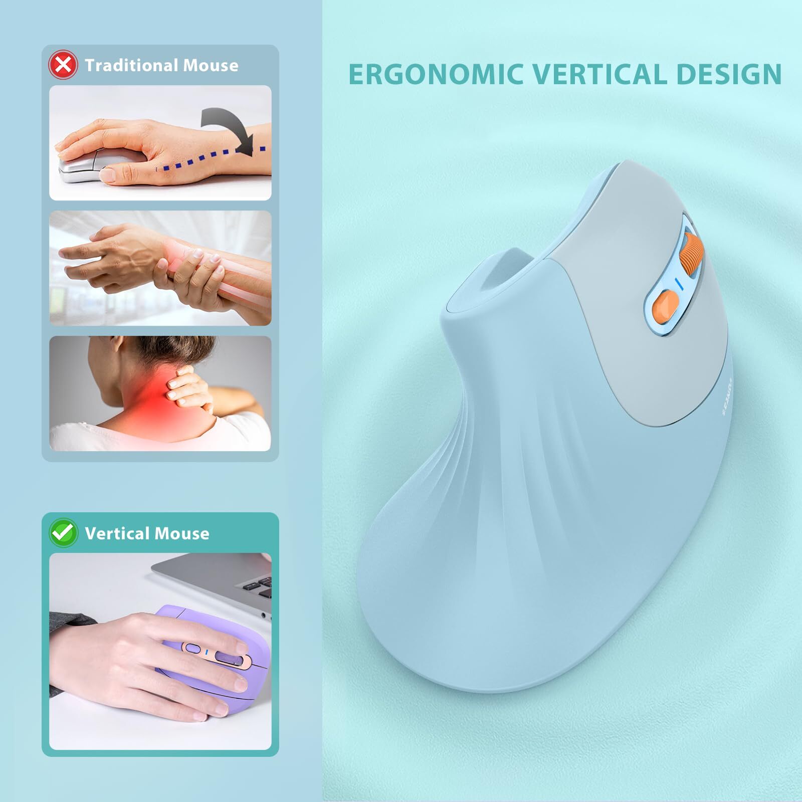 seenda Ergonomic Mouse with Jiggler - Wireless Vertical Mouse with Dual Connection (Bluetooth 4.0+USB), Reduces Wrist Strain, Quiet Click, Compatible with PC, Laptop, Mac, Windows - Sky Blue seenda Ergonomic Mouse with Jiggler - Wireless Vertical Mouse with Dual Connection (Bluetooth 4.0+USB), Reduces Wrist Strain, Quiet Click, Compatible with PC, Laptop, Mac, Windows - Blue Reduces Wrist Pain: This seenda ergonomic mouse is thoughtfully designed to minimize wrist strain, providing a natural and more comfortable hand position than a conventional mouse. It reduces hand strain throughout the day, making it perfect for those with a weak or injured wrist Bluetooth+USB Connection:Connect up to two devices simultaneously using either Bluetooth 5.0 or USB A. Effortlessly switch between them with a single button press.Compatible with Windows 8/10 or later, Mac OS X 10.10 or later, and Android 4.3 or later. For Laptop/PC/Desktop/iMac/MacBook Pro/MacBook Air/iPad/Smartphone uilt-in Auto Jiggler Mode: Enjoy added convenience with a mouse featuring an auto jiggler mode that prevents your computer from falling asleep exactly when you need it most – whether you're taking a call or attending to the doorbell. Activate or deactivate this handy feature with a simple 3-second press and hold of the DPI button. Silent Clicks: Experience a peaceful and focused work environment with our mouse's whisper-quiet clicks, offering a gentle and silent sound that won't disrupt others. Perfect for shared spaces like offices and libraries High Precision & Adjustable DPI: Browse websites with ease using the convenient "Page Back" and "Page Forward" buttons on this advanced ergonomic mouse. Customize your experience by easily adjusting sensitivity with 1000/1600/2400 DPI levels to suit your preferences Shipping from the USA All of our products are shipped from the USA, ensuring quick delivery to your destination. Payment We offer the following payment methods: PayPal, credit card, bank transfer, and eBay's secure payment system. Free Shipping & Free Returns Shipping within the USA is FREE. Additionally, any return is absolutely free for you. Risk-Free Purchase You have the option to return an item within 30 days without any justification. We cover the return shipping costs! Fast Shipping We ship immediately upon receipt of payment. Generally, the package is delivered within 2-3 days in the USA. If it takes longer, we will contact you. Quality and Costs Made in Europe, USA, China No customs fees or additional charges Total satisfaction guarantee Invoice with declared VAT available upon request in .pdf format Feedback Your feedback is very important to us. After you pay for your purchase, you will automatically receive positive feedback from us.