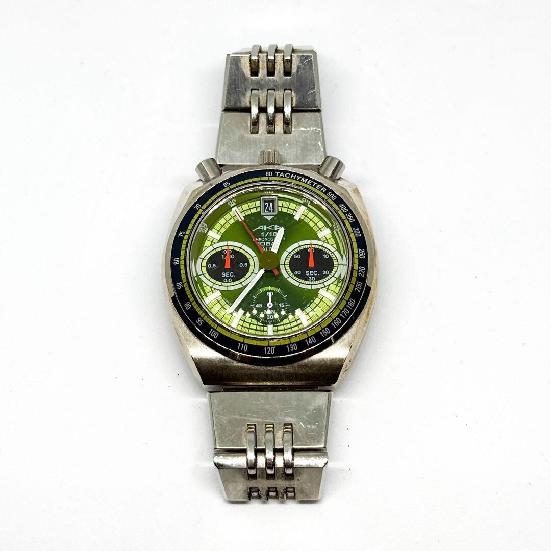 Description Vintage SEIKO ALBA AKA V657-6060 Green Quartz Chronograph Watch - Working Great! Discover a piece of JDM (Japanese Domestic Market) watch history with this striking SEIKO ALBA AKA V657-6060 quartz chronograph watch ! Featuring a vibrant green dial and a unique design from the "AKA" series, this timepiece is a fantastic find for collectors and enthusiasts of 90s Japanese watches. This watch is currently running smoothly and keeping accurate time, ensuring it's ready for wear. While it shows signs of use (usage scratches) consistent with its age, the crystal is clean and clear , providing an unobstructed view of the distinctive dial. The "AKA" series is known for its bold and unconventional designs, making this green variant a standout piece. SEIKO ALBA is a sub-brand of Seiko known for producing stylish and reliable watches, often with a focus on trends and unique aesthetics. The V657 movement is a robust quartz chronograph caliber. Key Features: Brand: SEIKO ALBA Model Name: AKA (V657-6060) Dial Color: Green Movement: Quartz Chronograph - Caliber V657 Functionality: Working perfectly / Running smoothly Case Size (Approx.): Face approx. 4.6cm - Note: This likely refers to the case width including crown or bezel. Wrist Size (Approx.): Up to 16.5cm Crystal Condition: Clean Style: Vintage Japanese, JDM, Chronograph, Sporty, Unique Design Reference Number: V657-6060 Condition: This SEIKO ALBA AKA V657-6060 is a pre-owned vintage watch. It is in good working order . There are usage scratches on the case and bracelet, as expected with a pre-owned item of this age. However, the glass/crystal is clean and free from major scratches that would impede visibility. Please examine all attached photos carefully for a detailed visual assessment of its cosmetic condition. The images are the primary source of information regarding its exact state. If you have any questions, please do not hesitate to ask. ^_^ Policy Payment You can use various payment methods based on eBay Managed Payments. Import duties, taxes and charges are not included in the item price or shipping charges. These charges are the buyer's responsibility. Shipping Expedited Shipping We always send the item with a tracking number. So please place an order without any concern on delivery. You can always track the delivery status. Shipping is only available to the address registered in eBay. If you want us to send another address, please change your address on eBay and then place an order. Shipping is available from Monday to Friday. Weekends are not available because freight companies are closed. Economy Shipping Delivery in 2-4 weeks. It may be delayed depending on the area and weather. Without tracking number. Please note: Due to Current unstable world situation, Japan Post has stopped shipping to some countries. If we cannot ship the item to you or change to courier shipping, I will contact you after ordering. Please note that additional shipping charges may be required if the shipment is changed to use a courier. Countries that cannot be shipped are constantly changing. Please contact me before ordering to confirm shipping availability and additional shipping charges. Thank you for your understanding. Cancellations & Returns Cancellation or returns will be accepted only if the item has an obvious problem that was not mentioned in the listing description. If that, please let us know within 3 days you got the item. Buyer is responsible for shipping costs and any charge incurred shipping products back. International Buyers Import duties, taxes and charges are not included in the item price or shipping charges. These charges are the buyer's responsibility. Please check with your country's customs office to determine what these additional costs will be prior to bidding/buying. These charges are normally collected by the delivering freight (shipping) company or when you pick the item up - do not confuse them for additional shipping charges.
