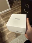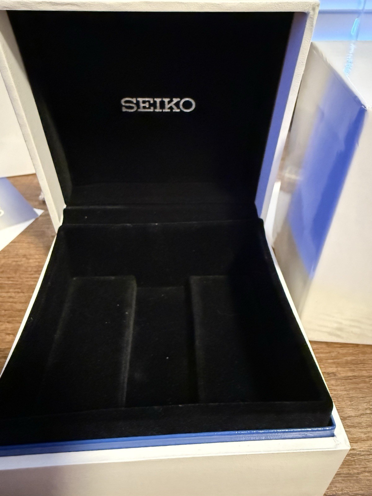 GORGEOUS DRESS WATCH. Seiko is the best value brand you’ll find. And this watch right here shows exactly why. Extremely reliable and serviceable movement with the 4r35 and a dial like no other. It’s often referred to as blue, but honestly it depends on the lighting. Typically it’s closer to white in my eyes, but I can see the blue sometimes. Comes with full box and papers. In great shape, lightly worn as the occasion for it doesn’t pop up terribly often for me.