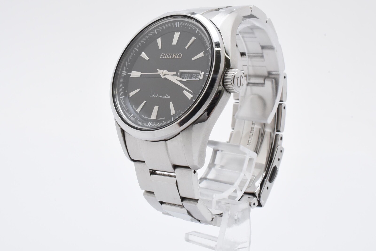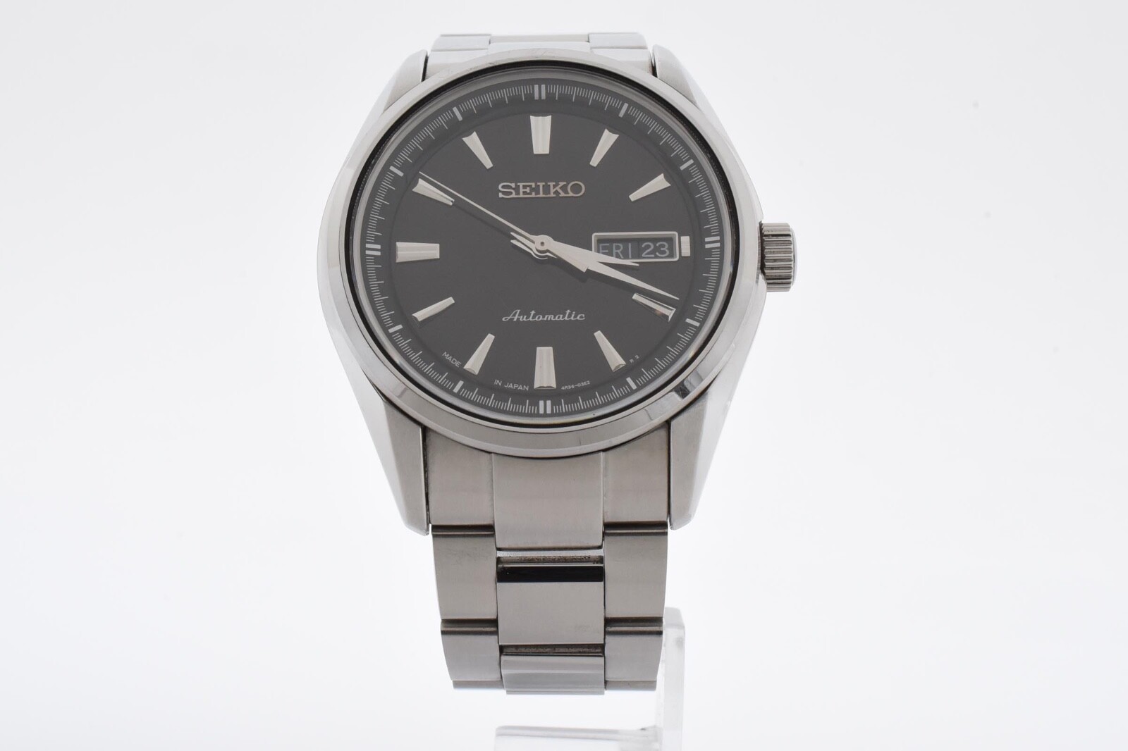 [EXC+5] SEIKO SARY057 Presage 4R36 Auto Men's Watch Black Dial Fast Ship Japan Description ■ Condition EXC+5 ■ Model Number 4R36-03H0 ■ Serial Number 571061 ■ Appearance [Case] There are minor scratches from normal use. [Belt] There are minor scratches from normal use. ■ Belt Size 17.0cm (6.69inc) ■ Functional It works properly. ■ Bundled Items All you can see on the picture will be included in a set of a package. Please refer to the pictures for more details. Please check the pictures and don't hesitate to ask any questions about the item ! Thank you. Payment We accept Pay Pal or Visa , Master Card , American Express and Discover . Payment is due within 5 days of the auction end. We will ship the item 3 business days after your payment clears. Shipping I send a product by Fed Ex or EMS I attach the tracking number. Please bid it without worrying. Shipping is only available to the address registered in Paypal. Please note that any address not registered in Paypal is not acceptable to ship. Shipping is available from Monday to Friday. Weekends are not available because post office is closed. Returns Unconditional Return Policy Customer service and satisfaction are very important to us. I have an unconditional return policy if notified within 30 of the receipt of the item. All returned items must be the original condition. All return requests must be made within 30 days of the receipt of the item. Please contact me first for return before you ship it back to me. The postage of the returned goods is a buyer burden. International Buyers Please Note: Import duties, taxes, and charges are not included in the item price or shipping cost. These charges are the buyer's responsibility. Please check with your country's customs office to determine what these additional costs will be prior to bidding or buying.