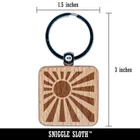 Shining Sun Rays Engraved Wood Square Keychain Tag Charm
