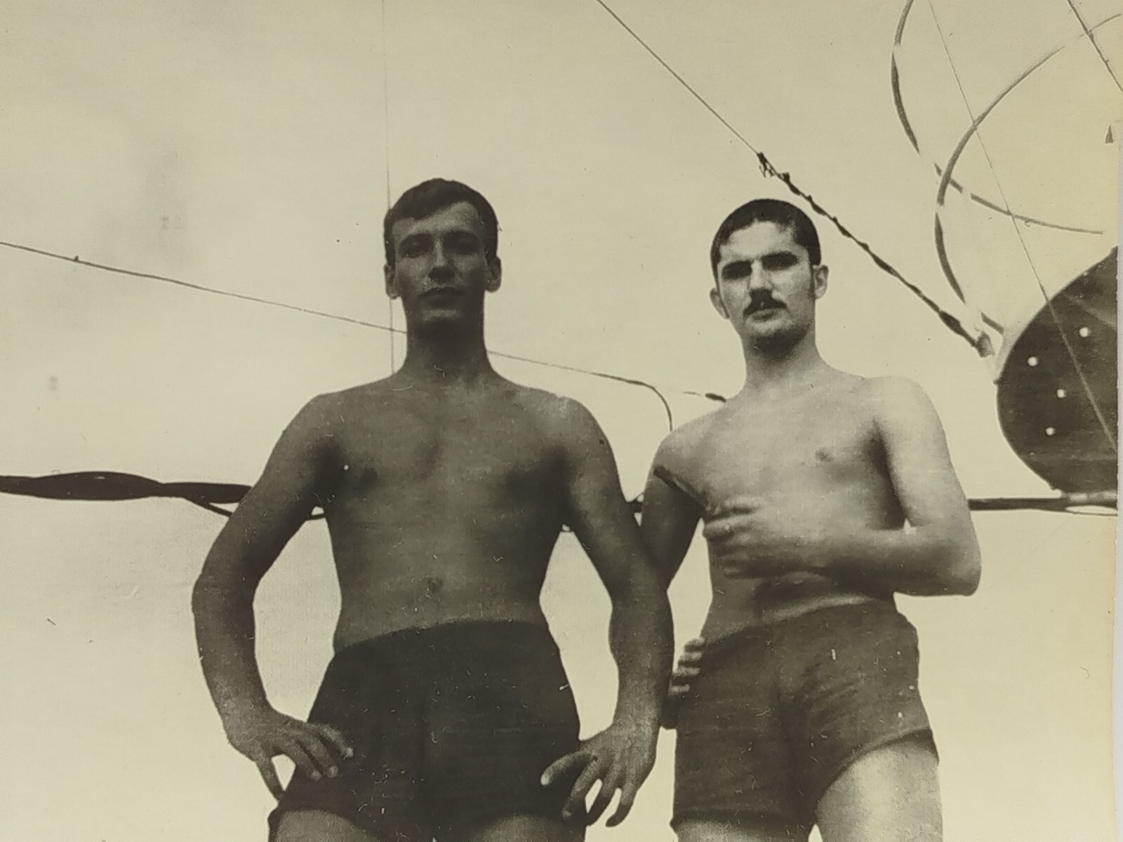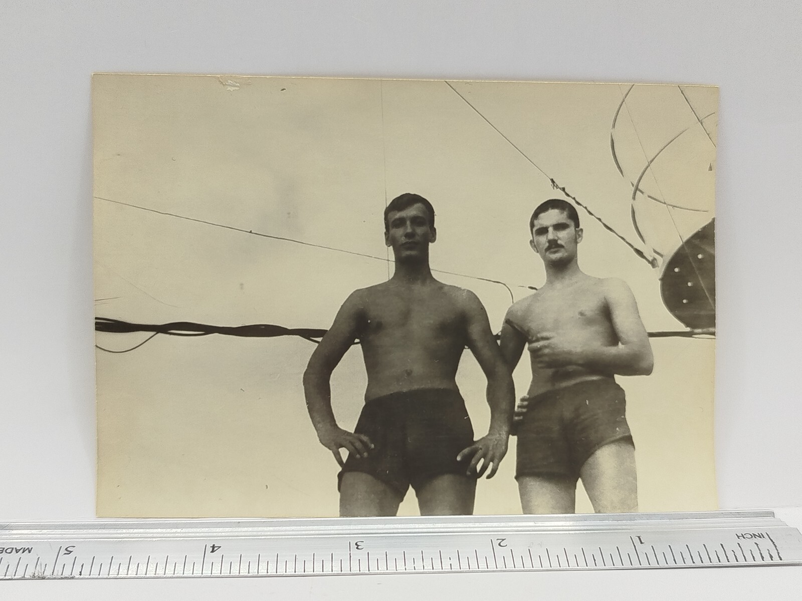 Shirtless Guys Trunks Bulge Muscle Affectionate Men Gay Interest Old Photo #40