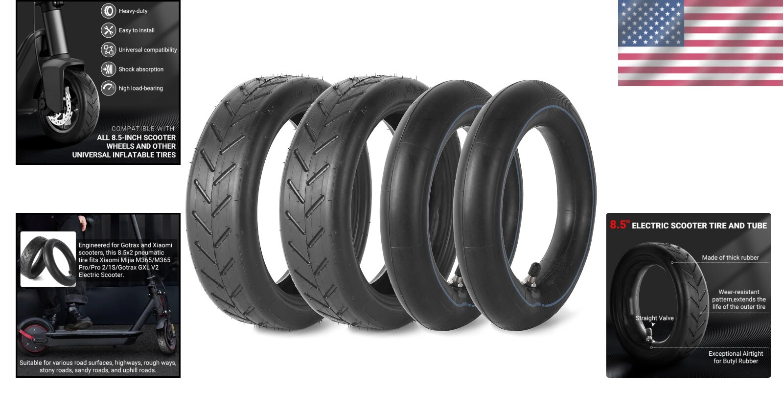 Shock-Absorbing 8.5x2 Electric Scooter Tires & Tubes - Year Round Performance