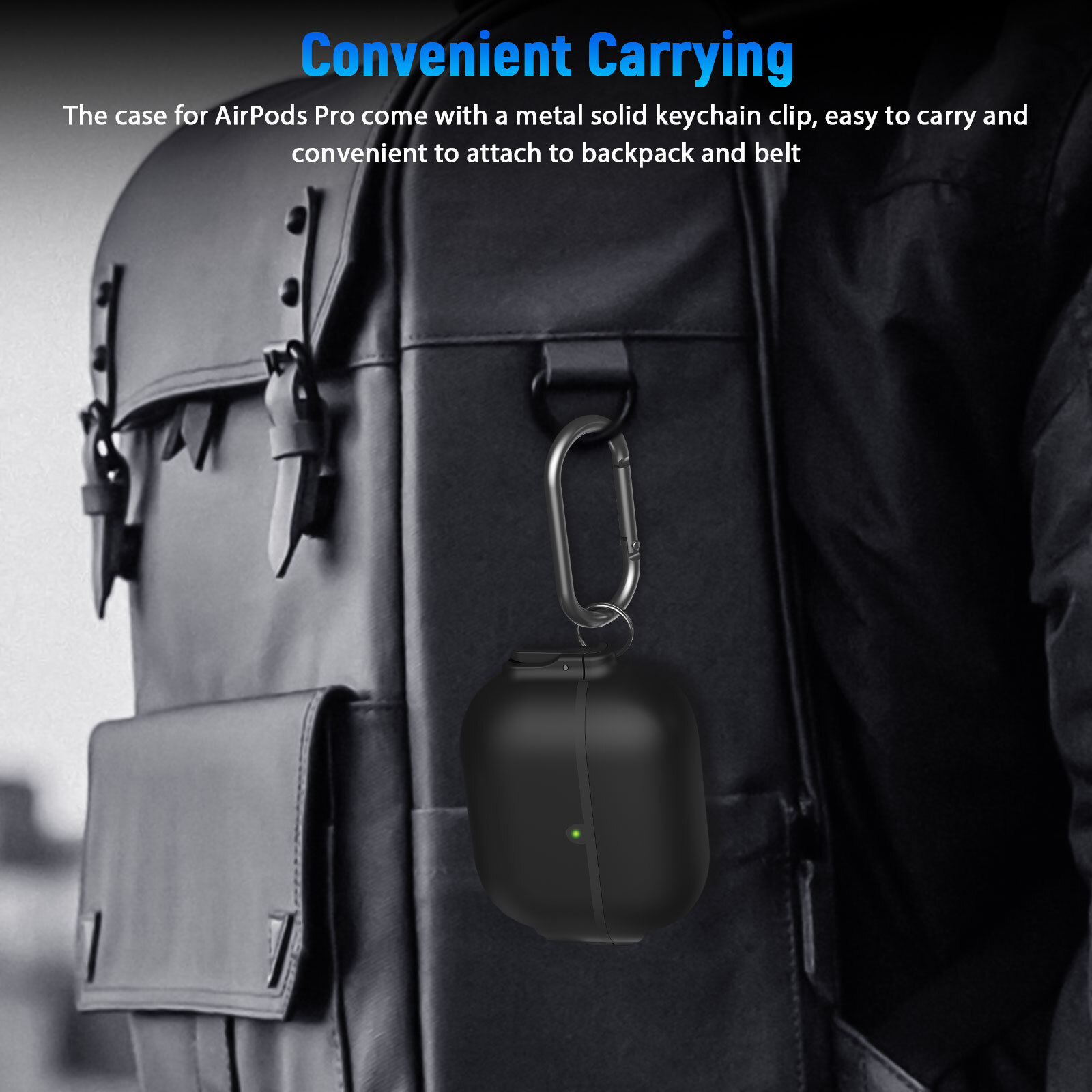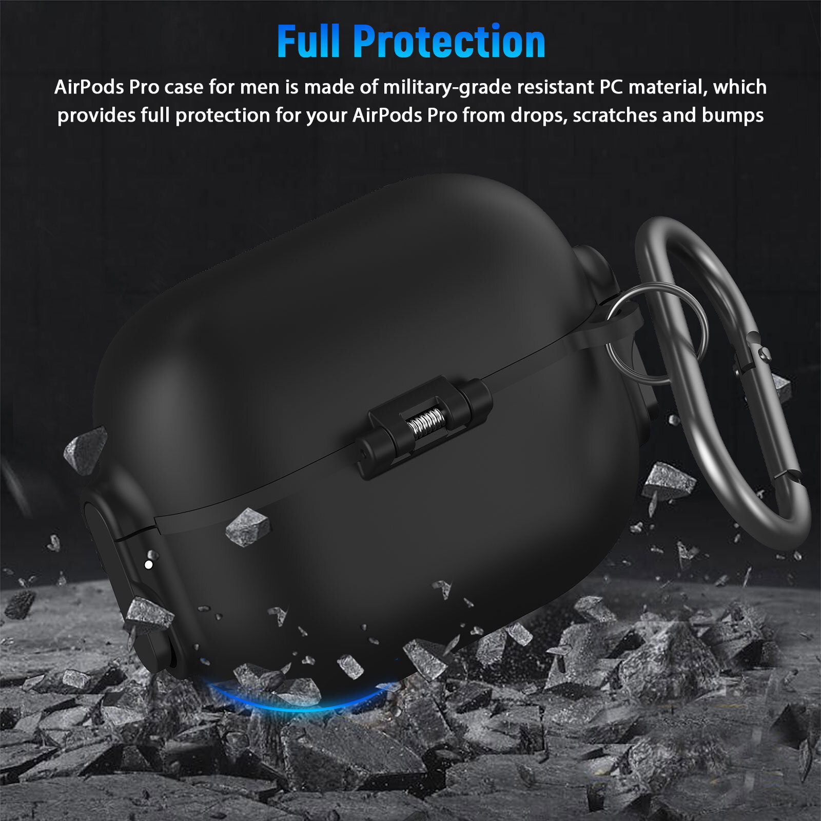 This AirPods Pro case is a game-changer! The secure lock keeps the lid tight, and the carabiner makes it super convenient to clip onto bags or keys. The military-grade material feels tough yet lightweight, offering full protection against drops and scratches. Love the one-click open featureβso smooth! Perfect fit for the 2019 AirPods Pro, and the sleek design adds a rugged yet stylish touch. Highly recommend for anyone who wants durability and easy access on the go!