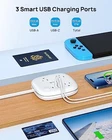 TROND Travel Power Strip for Travel and Business Trips Still have problems with wasted space with the traditional plugs? Want to find a power strip meets your travel needs? TROND Flat Plug Power Strip with 3 widely-spaced outlets & 3 smart USB charging ports allows you to make reasonable use of the socket. It makes up little space on your desk or floor and makes your desktop organized, compact and portable for travel. The slim design of the flat plug allows the power cord to sit close to the wall so that it could be easily hidden in the back of the furniture, bed, and refrigerator. 6-IN-1 USB C Travel Power strip Space Saving Flat Plug: 0.33inch Low-Profile Flat Head could be easily hidden in the back of the furniture, bed, and refrigerator, which can maximum save your outlet space occupied. Unique Slot/fillister Design for Cable and Plug: 2.6ft slim cord wrapped around an extension cord. It can be easy to pack and save more place for your backpack or suitcase. Cruise Friendly: No Surge Protector, It is the travel cruise accessory you must have. Dual Fast Charging USB-C Ports: Added 2 USB-C ports to meet more charging demand. USB-C port can up to 15W/5V/3A max which is up to 30% faster than other chargers. 6-IN-1 Desktop Power Strip with USB Ports: Flat extension cord could turn 1 socket into 3 outlets 1 USB-A and 2 USB-C, which could charge up to 6 devices at the same time. Specifications: Max Power: 1250w Voltage Compatibility: AC 100-250v Rated current: 10A USB Charger Power Rating: 3.4A/17W USB-A Charger Output: 2.4A Max USB-C Charger Output: 3.0A Max Outlet Quantity: 3 AC Outlets + 2 USB-C Ports + 1 USB-A Port Material: Fire-resistance PC Shell, PVC Copper Wire Cord Length: 2.6ft Cable Package List: 1 X Travel Power Strip 1 X Instruction Manual 3 X Mount Screws 100% Satisfaction Warranty: Our Worry-free 18-month Warranty and 30-day Money Back Guarantee, and Friendly Customer Service. 【Flat Plug Saving Space】With only a 0.33-inch ultra flat plug design, the upgraded flat wall plug is thinner than the regular flat plugs, which can easily fit in tight spots and hide behind the furniture, sitting flush against the wall completely. The wrapped-around cord is much thinner than the standard round power cord to run smoothly under the carpet and door gap. 【Power Strip with 2 USB C】This USB power strip features 3 widely spaced outlets and adds 2 USB C and 1 USB A, which provide power and charging for up to 6 devices. Max. power: 1250W (125V-10A). AC 100-250V. Maximum 3A output for each USB C port and Maximum 2.4A output for USB A port, USB total output 3.4A/17W. Power Delivery charge technology for USB C is NOT supported. 【Wrapped Around Power Strip】With a 2.6ft wrap-around cord, the travel power strip is designed as a carry-on compact size(4.6*4.0*1.1in), of which the thickness is thinner than all other extension cords. Its minimalist design helps to save your luggage space for travel or fits in a computer bag easily on business trips. It must be a great travel companion on the go! 【Cruise Ship Essentials】The small and light cruise power strip with non-surge protection, would not be confiscated by cruise lines at the security check. Besides, whether you're stuck at the airport and desperately need to charge your devices or need an extra few feet of power to reach the outlet when working remotely at a coffee shop or library, the small travel tool has your power needs covered. 【USB C Charging Station with Switch】This flat extension cord extra adds an on/off switch, When you go out or need to charge, press the switch to power off without unplugging the plug, which provides further protection from power overload, and also makes it easier for power management.
