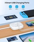 Short Extension Cord - Flat Plug Power Strip with 3 AC Outlets and 3 USB Ports 2 USB C, Wrapped Around Travel Power Strip, No Surge Protector for Hotel Home Cruise Ship Essentials Flat Plug Saving Space: With only a ultra flat plug design, the upgraded flat wall plug is thinner than the regular flat plugs, which can easily fit in tight spots and hide behind the furniture, sitting flush against the wall completely. The wrapped-around cord is much thinner than the standard round power cord to run smoothly under the carpet and door gap USB Power Strip: This USB power strip features 3 widely spaced outlets and adds 2 USB C and 1 USB A, which provide power and charging for up to 6 devices. Max. power: 1250W (125V-10A). AC 100-250V. Maximum 3A output for each USB C port and Maximum output for USB A port, USB total output Power Delivery charge technology for USB C is NOT supported Super Slim Travel Power Strip: This small power strip is designed as a carry-on compact size(**, of which the thickness is thinner than all other extension cords. Its minimalist design helps to save your luggage space for travel or fits in a computer bag easily on business trips. It must be a great travel companion on the go Cruise Ship Essentials: The small and light cruise power strip with non-surge protection, would not be confiscated by cruise lines at the security check. Besides, whether you're stuck at the airport and desperately need to charge your devices or need an extra few feet of power to reach the outlet when working remotely at a coffee shop or library, the small travel tool has your power needs covered USB C Charging Station with Switch: This flat extension cord extra adds an on/off switch, When you go out or need to charge, press the switch to power off without unplugging the plug, which provides further protection from power overload, and also makes it easier for power management Power Strip for Traveling Designed specifically for travel, it can fold up to a compact size with a cord wrapped around it. Small Tool for Businessmen Allowing charging at ports for your while your and coworkers' laptops are plugged in.
