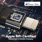 About the US We are a high-tech company dedicated to developing, producing, and selling USB cables. Our company has about ten years of experience in the industry. Each of our products is carefully selected. You can be assured of your choice. Product Advantages ●A 5.4-inch long fast Lightning cable is enough to avoid unsightly messes. ●30W Fast Charging, half an hour can charge the phone 60 percent of the regime without overheating. ●480Mbps Super Fast Data Transfer , which is Maximum transfer speed of USB 2.0 ●Perfect partner for your business trips and travels. It allows you to use Power Bank and Laptop more conveniently. If you purchase the product within 365 days of any quality problems, don't hesitate to contact us in time to replace the new product. If any issues are encountered during use, you can contact us, and we will give you an answer within 24 hours. 【The Advantage】We are a high-tech company dedicated to developing, producing, and selling USB cables. Our company has about ten years of experience in the industry. Each of our products is carefully selected, and it has won wide praise from domestic and international markets. You can be assured of your choice. 【Apple MFi Certified】Adopt latest C189 MFi chip which is stable and reliable to charge your iPhone without pop-up warning message, ensure all your Apple devices are safely charged at their fastest possible speed. 【Durable & sophisticated】Replace the traditional wire cores by FPC (Flexible Printed Circuit) with all soldering process fully automated by machine. The outer skin is made of premium tire-grade material with excellent toughness, making it flexible and tangle-free. 【Widely Compatible】The iPhone Lightning USB A cable fully compatible with iOS and works flawlessly with any Apple devices which has a lightning connector. It supports PD Fast Charge for iPhone SE 2020/12 Pro/12/12Mini/11 Pro/11/XR/XS/X/iPad Pro /iPad Air 3/iPad mini 5,etc. (Warm Tips: Only iPhone 8 and the newer iPhone support PD rapid-charge.) Note: Doesn't work with Dac. 【Our Commitment】 If you purchase the product within 365 days of any quality problems, don't hesitate to contact us in time to replace the new product. If any issues are encountered during use, you can contact us, and we will give you an answer within 24 hours.