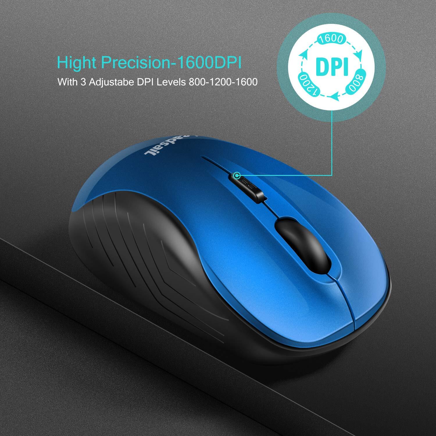 【Silent Click Noiseless Mouse】Would you like to do your job without missing a sound or disturbing your environment? Choose quiet mice; you can enjoy the same click feeling with over 90% less click noise. 【2.4G USB mouse,Plug & Play Simplicity】Compatible with most OS—Windows, macOS, Linux Chromebook, Simply plug the USB receiver into your computer laptop to start working in seconds. The receiver also provides a strong, reliable connection within up to 10 meters (33 feet) 【High Precision LED Mouse】:Featuring 3 adjustable DPI (1600/1200/800),the optical sensor allows you to track with smooth and accurate cursor control on almost any surface.You can take full control of your every aim with perfect tracking 【Portable Slim Mini Mouse】The slim mini mouse adopts shapely, domed design for giving your palm plenty of support and seamlessly fits in your hand, so you can work or play comfortably for long hours.Compact and wireless, it can be taken anywhere you go as it fits easily in your laptop case or in a bag. 【Energy Saving Mobile Mouse】With the help of the on/off switch button and auto-sleep power-saving mode,mobile mouse keeps going with 12 months battery life of power on a single AA battery(not included in the package).