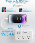 Store New Arrivals Add to Favorite View Feedback Contact Small Extension Cord 5FT with 3 AC Outlets 3 USB (1 USB), Flat Plug Power Strip Surge Protector 980J, Bedside Desk Charging Station, Flat Extension Cord for Home Travel Office Dorm Room Essentials… Description Color White Product Dimensions 4.6 x 2.6 x 0.1 inches Item Weight 9.1 ounces Total Power Outlets 3 Voltage 125 Special Feature Travel, College Dorm Room, Indoor, Usb Slot Size button switch 5 ft ✔【6-IN-1 Desktop Power Strip】Flat plug power strip with 3 AC outlets, 3 USB prots(1USB C) . USB C charging port features 5V/3.1A Max, USB A port features 5V/2.4A Max, USB total output 3.4A/17W. You can charge up to six devices at once. Save your space and keep your desktop organized without various converters ✔【2 USB A & 1 USB C Smart Charging Station】5V/3.4A total output, this USB charging station for multiple devices will auto-detect and deliver the optimal charging speed for your electronic devices, which is 30% faster than other usb extension cord. 2 USB-A & 1 USB-C ports could satisfy all your need in daily life, the ideal choice for home/dorm room essentials. ✔【Ultra Thin Flat Plug & 5Ft Flat Extension Cord】With only 0.4 in ultra thin plug can fits easily in tight spaces, and the 45° right angle design flat plug can be easily installed in the narrow gap behind furniture without blocking other outlet's use.the braided extension cord is not easy to deform, durable than other power cord. At the same time, the surge protector power strip can be easily hidden under the carpet, keeping your room neat and elegant. ✔【Extension Cord with Switch on/off】The multi plug outlet extension cord comes with a buttom switch that controls the surge protector extension cord individually, saving energy when not in use. Where plugging and unplugging power cords is a hassle, standalone switches offer great flexibility. ✔【Power Strip Surge Protection】- The surge protector protects your electrical appliances from lighting, surges, or spikes. The minimum energy-absorbing capacity of 980 Joules. The surge protector with usb ports with built-in multiple security modules safeguards your electronic devices from over-current/over-charge/short circuit/over-heated Product Description Product Description 6-IN-1 Desktop Power Strip with USB Ports okleeic Thin Flat Plug Power Strip with USB Ports Still have problems with wasted space with the traditional plugs? Want to find a power strip meets your different needs? okleeic USB Smart Power Strip with 3 wide outlets & 3 smart USB(1 USB-C)charging ports allows you to make reasonable use of the socket. It makes up little space on your desk or floor and makes your desktop organized, and suitable for home and office. The slim design of the flat plug allows the power cord to sit close to the wall so that it could be easily hidden in the back of the furniture, bed and refrigerator. Ultra Thin Flat Plug Power Strip with USB Ports 0.4inch Flat Plug Extension Cord okleeic strip flat plugs can be easily hidden on the back of furniture, beds and refrigerators to maximize outlet space. 45° Right Angle Design The right-angle flat plug design prevents the bottom plug from clogging. USB Desktop Charging Station USB-C Fast Charging The USB-C port can go up to 5V/3.1A, which is 30% faster than other regular chargers. USB Smart Charging Technology It can automatically detect the connected device and reach the maximum charging power. The total output of the three USB ports is 5V/3.4A. About us okleeic is a specialized manufacturer of surge protectors, power strips and more. By providing reliable power strips, USB charging stations, power outlet extenders and universal travel adapters. We provide users with a different experience while keeping them safe. 5 Ft Extension Cord with Multiple Outlets and USB Ports okleeic Surge Protector Power Strip okleeic Surge Protector Power Strip - 5 Ft Flat Extension Cord with 3 AC Outlets, 3 USB Ports Power up to 6 devices simultaneously with this 6-in-1 okleeic surge protector power strip. Features include 3 AC outlets, 3 USB ports (1USB-C fast charging), 5 ft braided flat extension cord, overload protection and 980J surge protection. Perfect for home, office, School,and dorm use. Product Specification: Input Voltage AC 100-250V Max.Current 13A USB A Output DC 5V,/2.4A USB C Outpu DC 5V/3.1A USB Total Output DC 5V/3.4A Power Cord 5 ft Flat Extension Cord Item Dimensions 4.6*2.6*1.1 Inches Weight 263g/0.57lb On And Off Switch The switch can completely shut off all electronics saving energy when not in use 5Ft Flat Extension Cord allows the power cord to sit close to the wall so that it could be easily hide in the back the furniture 4 Rubber Feet Pad The 4 rubber feet on the bottom keep from slipping and sliding small power strip Compact and lightweight, easy to carry, and perfect for travel. ABOUT US We offer the best prices around on high quality products. Our E-store includes media such as books, movies, music and games while offering electronics, toys, sporting apparel, clothing, tools, general home, garden items and more. SHIPPING We are always working hard to ensure your package arrives as soon as possible. Please understand that some factors like weather, high postal traffic, and the performance of shipping companies are outside of our control. We offer free shipping to the lower 48 states and ship within 2 business days of payment, usually sooner. We do not accept P.O. Boxes. Please provide a physical address. For shipping outside of the continental USA, we only use eBay's Global Shipping Program.The item is shipped to KY and then sent to the rest of the world. International customers are responsible for all duties and taxes. Continue to check out in order to calculate costs for shipping the item to your country. Messages regarding eBay's Global Shipping Program MUST be directed at eBay EXCLUSIVELY. RETURNS We offer a 30-Day Return Policy on items which you are