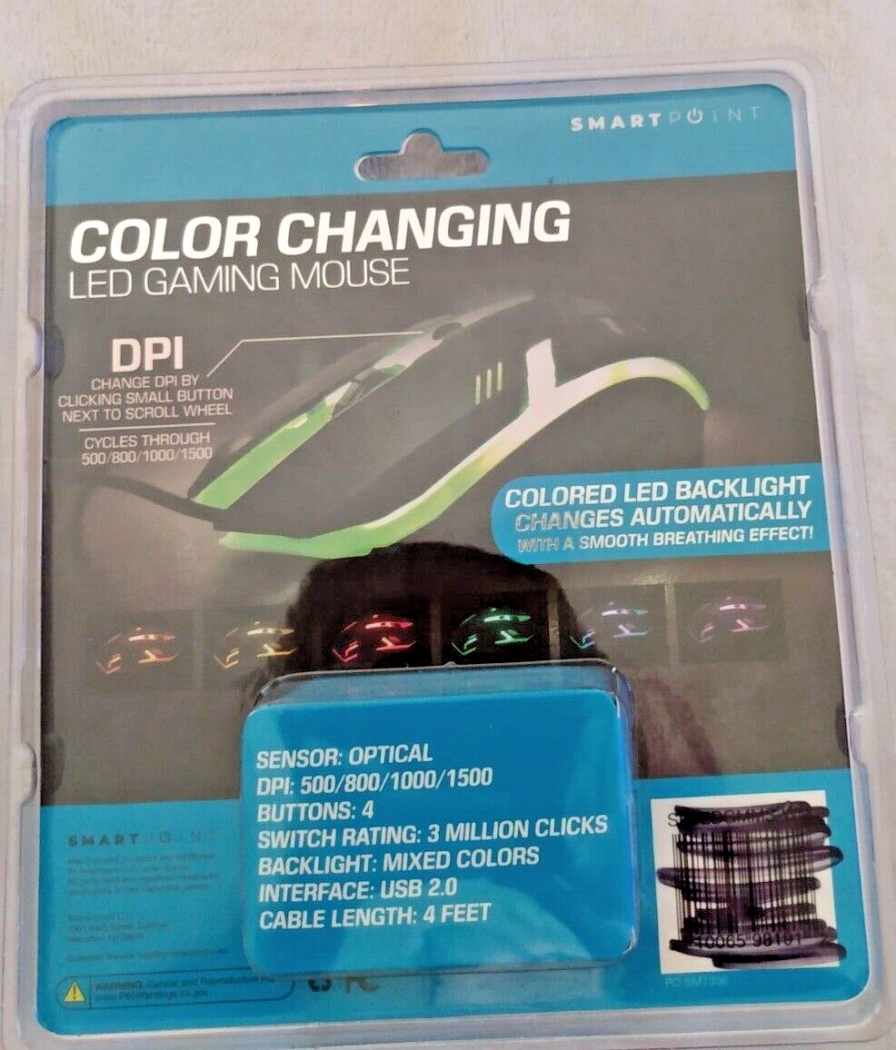 Smart Point Multi-Color Changing LED Gaming Mouse Compatible W/Mac & PC. New, sealed. Message with questions. Thanks. I do not ship to freight forwarding companies.