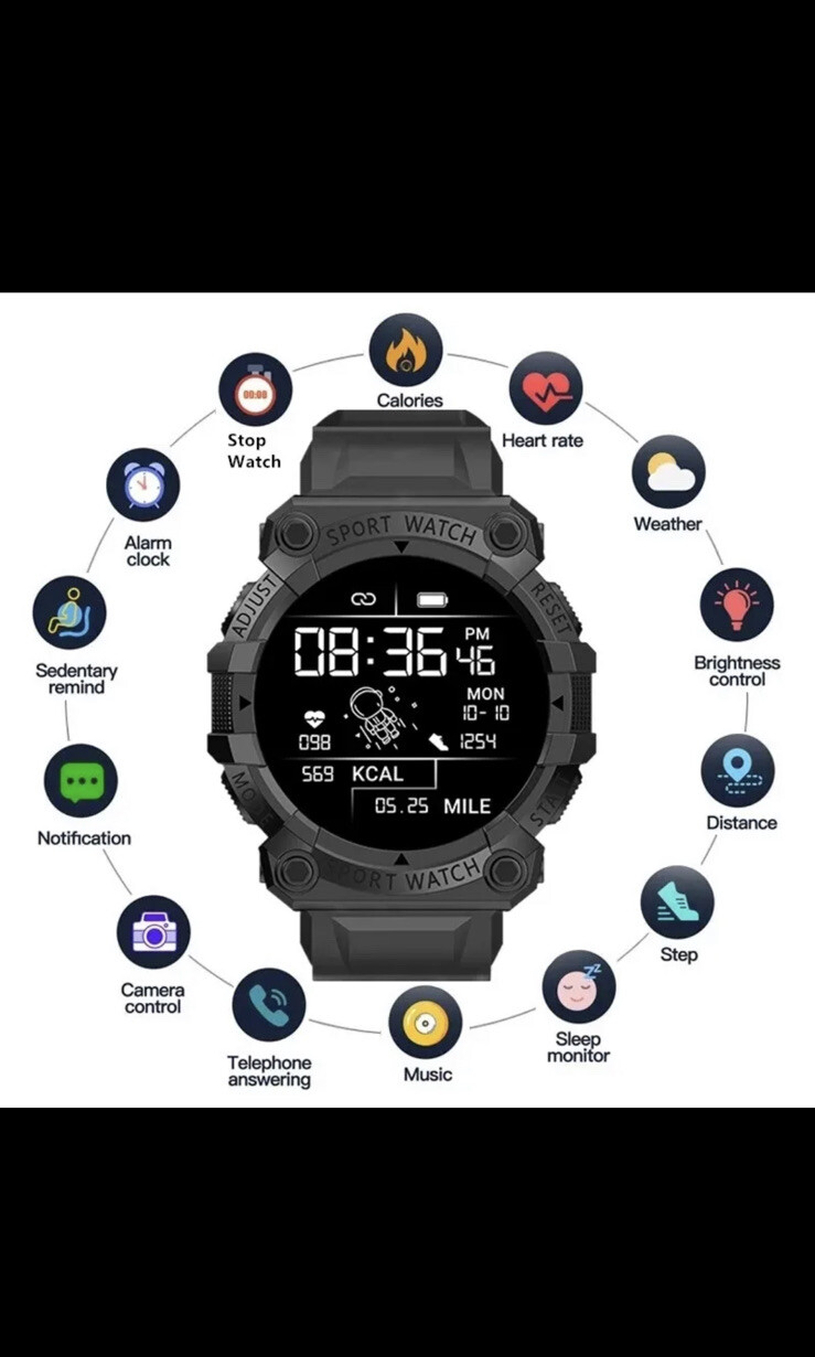 Smart Watch Sports Bluetooth Reminder Color Screen Fd68s Health Monitoring Wear Watch Black