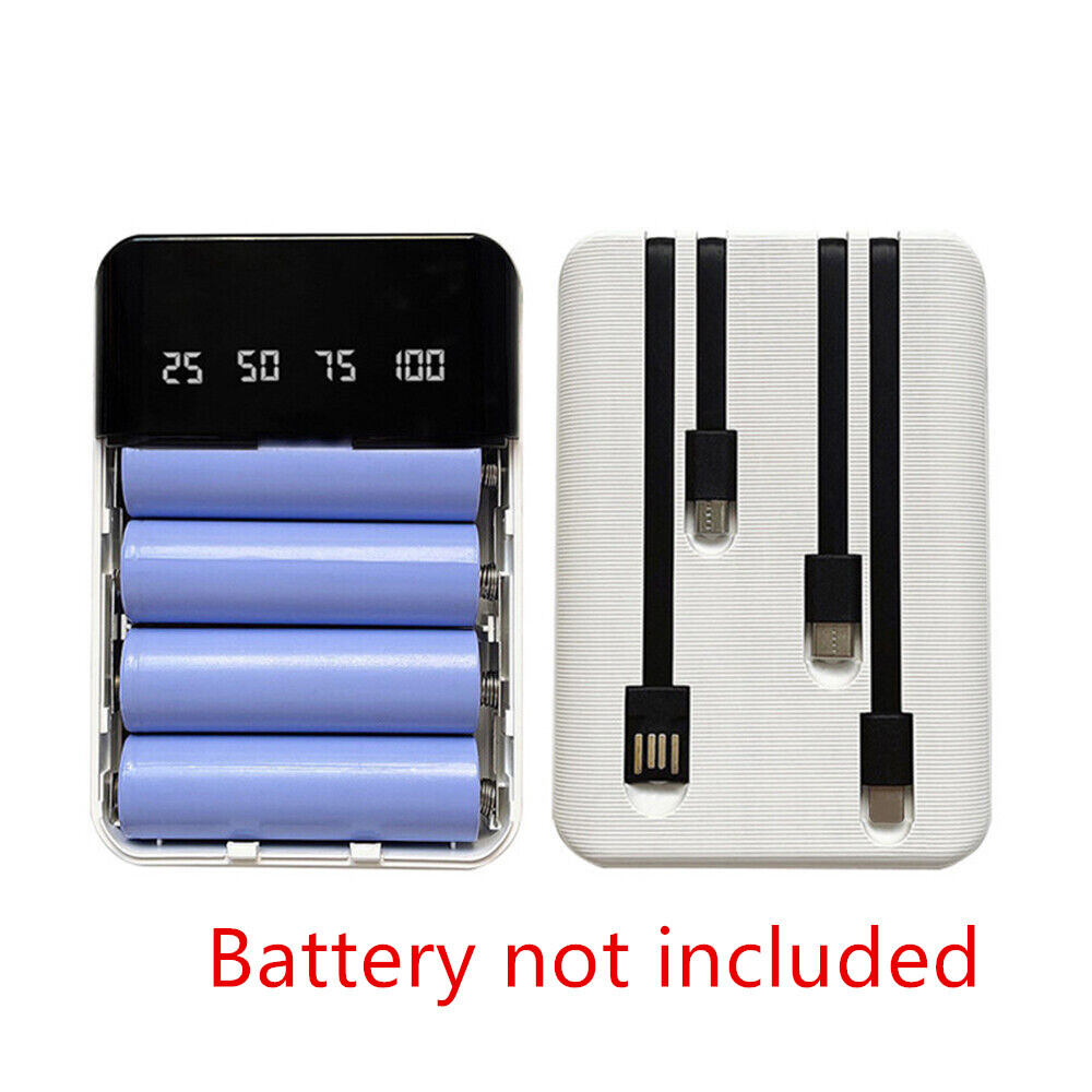 Product Description Features: 1. Place 4 batteries, removable, comes with 4 charging cables, no welding DIY battery box. 2. Widely compatible: suitable for 18650/18700/20700/21700 battery power supply, not include battery. 3. Unlike the traditional non-removable battery box, this push-pull design can be opened repeatedly to replace the battery cells at will. 4. With digital display, you can see the battery power, convenient and timely replenishment of power, comes with USB/Micro/TYPE-C/and the interface for IiPhone. 5. Compact and convenient, is a good companion for home/outdoor play/outdoor sports. Attention: Purchase of this product does not include batteries, need to be purchased separately, the battery is a life cycle, broken skin batteries do not use again, the battery for a long time the internal resistance will be elevated internal resistance is too high will affect the motherboard normal boost and high-power output load current limiting, it is recommended to use new batteries, before purchasing, first of all, confirm that the voltage is 3.7. Battery positive and negative do not place the wrong. Specifications: Applicable batteries: 3.7 voltage/18650/18700/20700/21700 batteries Output voltage: 5.2V Output current: 2.1A Input voltage: 5V Input current: 2.1A Cycle life: >500 times Operating temperature: -10℃-40℃ Storage and transportation temperature: -20℃-50℃ Size: 125*85*30mm Package Include: 1* Power bank case battery box Payment Shipping Returns Contact Us We accept PayPal via eBay Secure Check-Out . Payment is expected within 7 days of auction close. Unpaid Items will be forfeited per eBay . Immediate payment needs to be processed for items with Add to Cart option so that any promotional discounts can be applied to your order immediately. 1.We ship to your eBay or Paypal address. Please make sure your eBay and Paypal address is correct before you pay. 2.Items will be shipped within 1-3 business day when we received payment. 3.Delivery time depends on destination and other factors; 4.International buyers please note: a.Import duties, taxes and charges are not included in the item price or shipping charges. These charges are buyer’s responsibility. We will try our best to reduce the risk of the custom duties. b.Please check with your country's customs office to determine what these additional costs will be prior to buying. We offer full refund 100% from the price you buy. You can return item within 30 days after items received. We do our best to value every customer a 5-star positive eBay experience by working hard and professional. We also provide accurate information for our products, prompt communication and reasonable and fair price (the balance between price and quality) to our customers. We are welcome and happy if you have any issues, problems or suggestions. Please feel free to email us thru eBay. If there is no response after contacting us several times, please check your email spam folder. Please DO NOT Leave us Neutral or Negative Feedback without telling us in advance. We will do our best to help you to resolve your problems. We reply any email messages within 1 business / working days; Our Business hours: Mon-Fri 9:00-18:00, UTC/GMT +8 hours. Payment We accept PayPal via eBay Secure Check-Out . Payment is expected within 7 days of auction close. Unpaid Items will be forfeited per eBay . Immediate payment needs to be processed for items with Add to Cart option so that any promotional discounts can be applied to your order immediately. Shipping 1.We ship to your eBay or Paypal address. Please make sure your eBay and Paypal address is correct before you pay. 2.Items will be shipped within 1-3 business day when we received payment. 3.Delivery time depends on destination and other factors; 4.International buyers please note: a.Import duties, taxes and charges are not included in the item price or shipping charges. These charges are buyer’s responsibility. We will try our best to reduce the risk of the custom duties. b.Please check with your country's customs office to determine what these additional costs will be prior to buying. Returns We offer full refund 100% from the price you buy. You can return item within 30 days after items received. Contact Us We do our best to value every customer a 5-star positive eBay experience by working hard and professional. We also provide accurate information for our products, prompt communication and reasonable and fair price (the balance between price and quality) to our customers. We are welcome and happy if you have any issues, problems or suggestions. Please feel free to email us thru eBay. If there is no response after contacting us several times, please check your email spam folder. Please DO NOT Leave us Neutral or Negative Feedback without telling us in advance. We will do our best to help you to resolve your problems. We reply any email messages within 1 business / working days; Our Business hours: Mon-Fri 9:00-18:00, UTC/GMT +8 hours. powered by