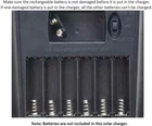 100% Money Back Guarantee if you are not satisfied with your purchase! ___________________ Description: Solar AA & AAA Rechargeable Batteries Charger for 1.2V NiMH NiCD & 9V Battery with 2Watt Solar Panel Portable Backup for 1.2V Ni-MH Ni-CD Household Battery(No Battery Included) [7-Bay Battery Charger]--The solar charger can trickle charge 6pcs 1.2v aa/aaa rechargeable batteries and 1pcs 9volt battery together.Applicable batteries include:1.2volt AA size, AAA size, and 9 Vot battery. This range of household batteries are used in most electronic devices, such as Disc player,Remote control, Radios, Shavers,Toys, torches,outdoor solar Landscape string lights,solar walkway light,solar power motion sensor security lights. [2Watt Solar Panel and Green Power]--It is a very good backup household battery charger kit.The builtin solar panel is made of crystalline solar cell. And the output power is 2Watt.It is also good for emergency and outdoor use.The amount of electricity produced varies according to the strength of sunlight. When under full sun (1000W/㎡), the solar cell produces Min. 600mA per hour. For 9V battery charging, the solar panel produces Min. 20mA per hour. It would be a little bit slow for 9V Battery. [Charging LED Indicators]--Built-in with LED indicators.The Red indicator goes on when the solar panel is charging the battery. The Green light indicator goes on when the battery is fully charged.When there is no battery in the solar battery charger while it is placed under sunlight. The “Battery Full” LED will go on. [Retractable Handle]--This solar battery charger has a retractable handle, which can be pull out for convenient carrying. The handle can also be folded as a support to tilt the solar battery charger, which help to get more power from the sunlight. For optimal power, ensure the solar panel (solar cell up) is directly facing the sun. [Stronger and Durable]--Covered with ultra clear PV glass which is more efficient and also with Durable ABS plastic housing which is stronger. With BUILT-IN DIODE for prevents reverse charging from batteries. ________________________ 100% Money Back Guarantee: We offer 30 Day Money Back Guarantee from the day you purchased if you’re not satisfied with your product. If you have any questions about our products, please contact us as soon as possible. Customer satisfaction is our absolute priority. Shipping: We are always working hard to ensure your package arrives as soon as possible. Please understand that some factors like weather, high postal traffic, and the performance of shipping companies are outside of our control. We offer free shipping to the lower 48 states and ship within 3 business days of payment, usually sooner. We do not accept P.O. Boxes. Please provide a physical address. You will be notified via eBay messages as soon as your items ship. Delivery: We will ship out the item in 2-3 working day after receiving the payment. Usually the delivery takes 2-5 business days. If you don't receive the items after 10 days, please feel free to contact us. You will get a replacement or a full refund. Please DO NOT open a return request or leave negative feedback without asking for help. Returns (Get Free Return Label): We offer a 30-Day Return Policy on defective/wrong items or items which you are not completely satisfied with. You have the option for a full-refund or an exchange of the item. No need to buy eBay return label. Contact us via eBay messages and get free return label. Returned items must be in all of the original packaging and include all of the original accessories or items that came with it. The item and package should be in original condition. Contact Us: Any queries or issues incurred, please feel free to contact us via eBay message, we will get back to you within 24 hours. Please DO NOT open a return request or leave negative feedback without asking for help. Feedback: Your feedback is very important to us. After you get your package and you are satisfied with our service, please leave us positive feedback. We are highly appreciated for your POSITIVE feedback and 5 stars. Enjoy shopping.