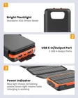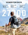 Super-Fast Charging: With a 22.5W fast charging speed, the battery backup can charge your iPhone 11 up to 65% in just 30 minutes, helping you stay connected and powered up on the go. Solar Charging: Equipped with 4 solar panels and capable of generating up to 6W of power in direct sunlight, the solar power bank provides a reliable source of energy to recharge your devices when you're off the grid. Power for Days: The solar charger boasts a massive 27000mAh capacity, allowing you to charge an iPhone 8 times or a tablet 3.5 times before needing to recharge the power bank itself. Built for the Outdoors: Take your outdoor adventures to the next level with this durable portable solar charger. Its robust construction is dust and drop resistant, and the foldable design allows for easy attachment to your backpack or packing in your bag. Fast Recharging: Thanks to its 18W high-speed USB-C input/output, the solar power charger can be fully recharged in just 5 hours with a PD 20W charger(not included), so you can quickly get back to using it to power your devices.