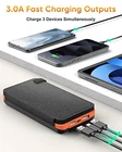 25000mAh High Capacity: This solar power bank can charge phone about 6-8 times, and a tablet about 2 times. When fully recharged, it will provide your phone with almost one week's power. 4 Foldable Solar Panels: With 4 high-performance solar panels, the solar charging speed of this solar battery charger can reach up to 6W under direct sunlight, which is 4 times faster than that of a single panel. The foldable panels make it portable and compact to carry. Fast Charging Outputs: This solar phone charger with dual USB ports allows you to share juice simultaneously and quickly charge your phone from 0%-50% in 30mins. The ports with automatically power in/output match protects your devices from overcharging, overcurrent and short circuits. Perfect Outdoor Power: This solar battery power bank is great convenient power source for all outdoor activities such as camping, hiking, and fishing. The LED flashlights is helpful for emergencies and power outages. Durable and Rugged Design: This solar portable charger is designed in sturdy construction and waterproof silicone cover to protect against dust, shock and splash. Also, it is convenient to hang on a backpack for solar charging when marching to the destination. Two Charging Ways: You can fast charge this solar powered charger via USB cable in 8 hours, or you can put it under direct sun for solar charging. Kindly remind: Make sure the solar battery pack is fully charged before you go out.