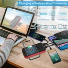 【High Capacity Solar Charger 】: Built-in 30000mAh Li-polymer battery,built-in over-charging, over-voltage, over-current and over- heating protection, Can be more than 1200 times recharging. Can charge your phones 4-10 times or tablets 2-4 times for anaverage of 7 days of usage per charge. 【Wireless Portable Power bank】: Solar power bank with wireless supports all wireless-enabled cell phones. as iPhone 12/11 Pro Max / XS Max/XR / 8 plus/6S/7, Samsung Galaxy S20 / S10/S9/S8/ Note 10 Plus, etc. This power bank simultaneously has built-in cables and wireless output supports, it really achieves that you don't need to carry a charging cable for your mobile phone. 【6 Outputs & 3 External Cables】: This portable charger power bank equips with Micro USB & Type C input ports and 5V/3A USB Quick charge & Type C Output ports. Solar power charger has also built-in lightning protection cable, micro cable and type C cable for most cell phone directly. Max 5V 3A quick charger port can save about 50% charging time. The power bank can automatically adjust the output to provide the appropriate current to provide the fastest charging speed. 【Built for Outdoors】: The Solar panel has rubber throughout the structure to provide protection similar to the case. The solar phone charger is built with dual bright flashlight with Strong-Flashing-SOS 3 light modes, and rugged construction is dust, shock and waterproof. A essentials for outdoor activities, like camping, cycling, fishing, traveling, hiking and beaches.(Note: long press the power button to turn on or off the light) 【You will get】: 1 x 30000mAh Solar power bank, 1 x 3A Fast charger cable, 1 x Lanyard, 1 x user manual.Our after-sales team is ready to solve after-sales problems for you, Sincerely hope that such shopping experience can give you a happy memory.