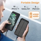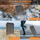 【Super Large Capacity】:Solar charger has a large battery capacity of 42800mAh, this solar power bank can charge your devices multiple times. The super battery life allows you to eliminate the anxiety and worries about the depletion of the device's power anytime and anywhere. Whether it is daily life, travel, hurricane prep, outdoor camping, cycling, fishing, hiking, kayaking, etc, this solar battery charger will all become part of your "traveling essentials bag". 【Power 3 Devices at Once】:This solar phone charger is also equipped with 4 ports (Micro USB input, USB A&B output, USB C input/output), providing 5V/3A high-speed charging to save time. It supports charging 3 devices simultaneously. It can help the QC3.0 fast charge protocol. Keep all your devices alive. Sharing with families and friends is perfect. 【Two Different Charging Methods 】: 42800mAh External battery charger can be recharged via an adapter and solar power, freeing your worries of power-off. It's highly recommended to charge it via a wall outlet in daily life and take the solar charging feature as the emergency backup solution.The USB cable in the package is only used to charge the solar charger. It is not recommended to charge other devices, which may slow down the charging efficiency due to incompatibility. 【Sturdy&Durable Design for Outdoor】: The Power bank uses strong professional ABS material.This solar battery pack (IP64) is well made to be Waterproof/Shockproof/Dust-proof, which can withstand the harsh environment outdoors. It's equipped with Dual super bright LED lights, a Must-Have tool for outdoor activities and home emergencies. With more than 1600+ charging life cycles, it is very reliable and durable. 【Reliable Service for Solar USB Charger】: 24h online after-sales service, we will fast, friendly, and hassle-free customer service team is there for you. If you have any questions about our products or services, please do not hesitate to contact us, and let us know.