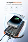 【SUPER LARGE CAPACITY】- Our solar phone charger boasts a 49800mAh high-density lithium polymer battery. It has a long lifespan, supporting thousands of recharge cycles. 【FAST CHARGING】- We upgraded the output port of the classic to Type-C 5V/3.1A fast charging, and the charging speed has increased by 50% compared with the original. Compatible with 99% of devices in the market, such as iPhones, Samsung, tablets, etc. 【POWER 5 DEVICES SIMULTANEOUSLY】- Equipped with 3 ports (USB-A output, Type-C input, Micro-USB input) providing 5V/3A high-speed charging, this solar phone charger simultaneously charges up to 5 devices. With 4 charging cables and wireless charging, you can charge up to five devices at time. 【WIRELESS CHARGING】- Enjoy advanced wireless charging with this power bank, compatible with all wireless-enabled devices. Simply place your device in the designated area for instant, cable-free charging. 【BUILT-IN FLASHLIGHT】- The portable solar charger comes with an LED flashlight featuring 3 modes (Steady, SOS, Strobe), perfect for emergencies, power outages, and camping. 【USB & SOLAR CHARGING】- Solar power bank can be charged by an outlet or solar panel. Please note that the solar charging speed depends on the intensity of light and its influence on the area. It is recommended to fully charge with USB before traveling, with solar charging as an alternative. 【OUTDOOR DESIGN】- Made from high-strength ABS and PC materials, this power bank is IP65 waterproof, heat-resistant, shockproof, and dustproof. The ultra-dense, fine-grained, non-slip design provides a comfortable grip for a better user experience. 【INTELLIGENCE SAFETY PROTECTION SYSTEM】- Solar battery bank has built-in multiple intelligent security protection systems, to keep your device away from overcharge, over-current, over-voltage, overload short circuits, etc. Through UL battery testing and full charge protection, make you and your device safer.