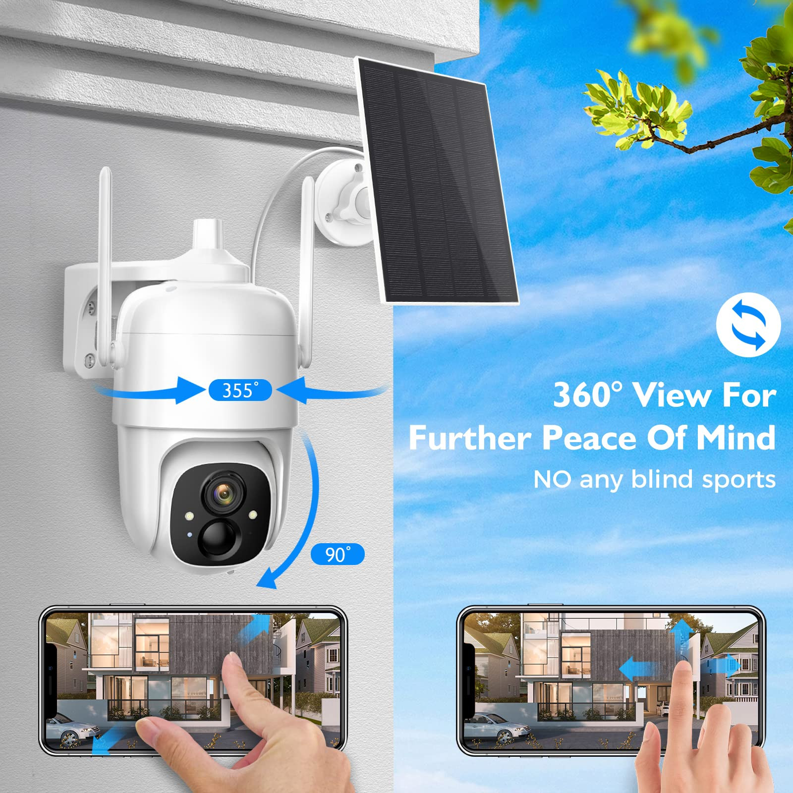 Solar Powerd and Full 355° Coverage: The solar security camera has a high capacity battery and is fully charged through the solar panel or USB cable, to achieve a 100% wireless and uninterrupted power supply. Never need to disassemble the camera to charge, At the same time, the APP can control the horizontal 355° and vertical 90° rotation angles, and easily cover the 355° field of view. It can bring you 365 days of uninterrupted protection,and ensure your home's safety. 2K 3MP and ColorNight Vision: The wireless outdoor camera uses the most advanced 1/3CMOS color sensor and advanced 2K 3MP optical lens. Provides detailed and clear graphics and video even in low light conditions, while the upgraded high-power white light and built-in infrared LED array can help you capture colorful pictures and videos at night with a night vision range of 7-10 Meters, and can capture more things in the dark, can see any corner you want to monitor, let you sleep peacefully. IP65 Waterproof and Enhanced WiFi Antenna: The wireless outdoor security WiFi camera is made of enhanced IP65 material, which can be used safely regardless of rain, sunlight, high temperature, and severe cold. At the same time, it is equipped with a high-gain 4dbi WiFi antenna and 2.4G WiFI transmission, which can receive your data in a wider range. The network signal has good wall penetration, and strong anti-interference ability, and realizes the security protection for the whole year. PIR Sensing and Two-Way Talk: The solar security camera chooses a more complete PIR sensing technology, intelligently distinguishes people, cars, pets, passing, staying, leaving, etc., pushes them to the APP''Vicohome''in real-time, and can draw customized monitoring areas at the same time, through the built-in microphone and speaker, Remote warnings can be used in emergency situations to prevent losses. Also, chat with family and friends in real time. Let you know the dynamic anytime, anywhere. Smart Sharing and Privacy Protection:Solar Outdoor Security Camera supports multi-user connectivity and device sharing with 8-128GB micro SD card (not included) and free 3-day trial cloud storage, Out and about or busy at work, you may ignore the notification, but family members can scan your code to access the camera and protect your home together, while we focus on customer security and privacy protection, all images are encrypted, and no one can access the information without your consent.