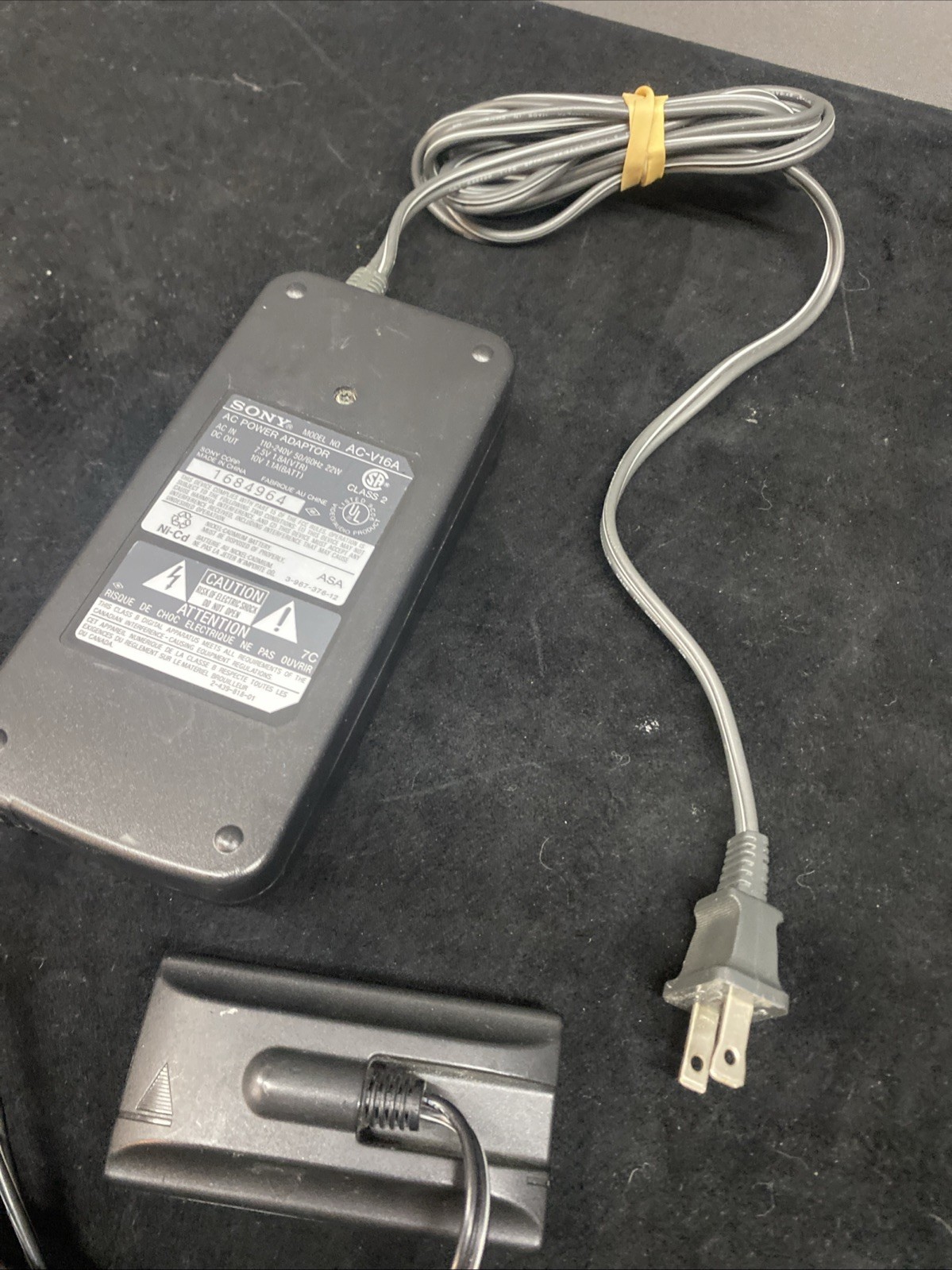 The Sony AC-V16 OEM Battery Charger is a reliable AC power adapter specifically designed for Sony Handycam camcorders. This device-specific charger is compatible with Sony camcorders and is perfect for charging your battery efficiently. With its model number AC-V16, this charger ensures a proper fit and reliable power supply for your camcorder, making it a convenient accessory for all your filming needs. BATTERY NOT INCLUDED. TESTED AND WORKING. HAS SOME SCRATCHES AND WEAR TO THE FINISH