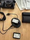 Camera is in great clean working condition with lots of accessories. Comes with everything pictured three batteries, case, lens filters, chargers, lens. Awesome camera will be shipped with care and insured.